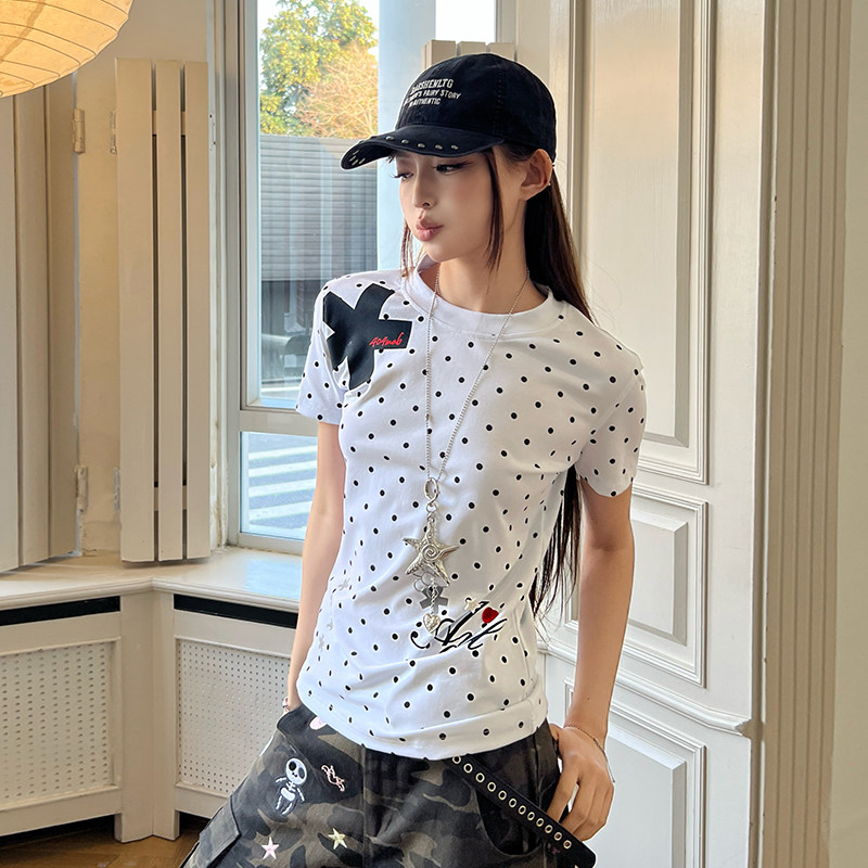 404MOB精梳棉潮牌短款修身T恤女2026夏季轻亚风辣妹潮牌短袖体恤