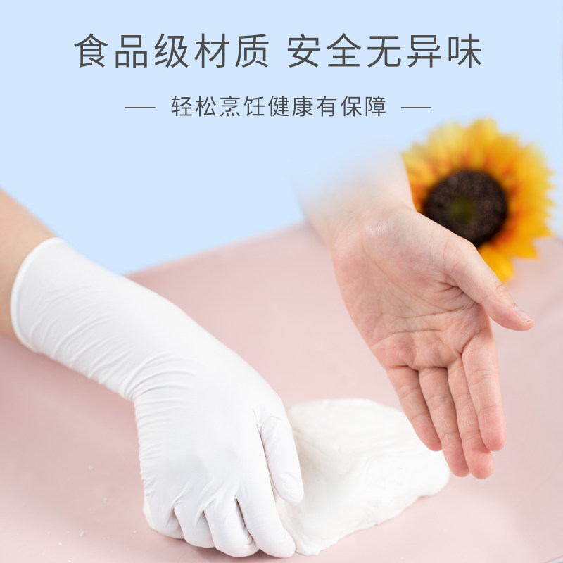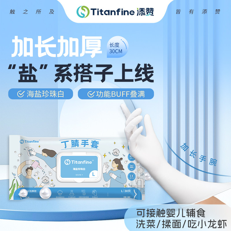 Titanfine添赞加长加厚海盐珍珠白丁腈清洁厨房耐用食品级手套