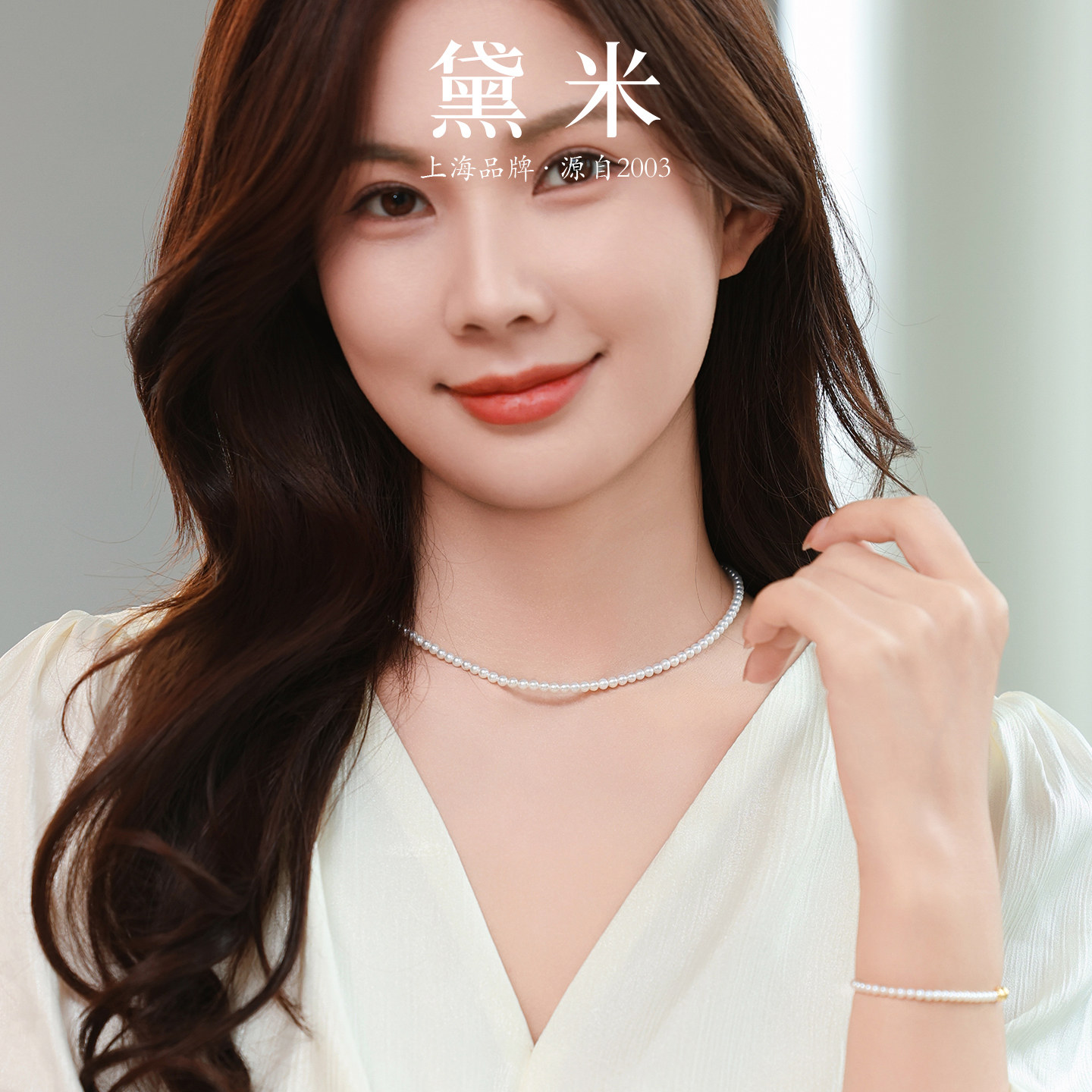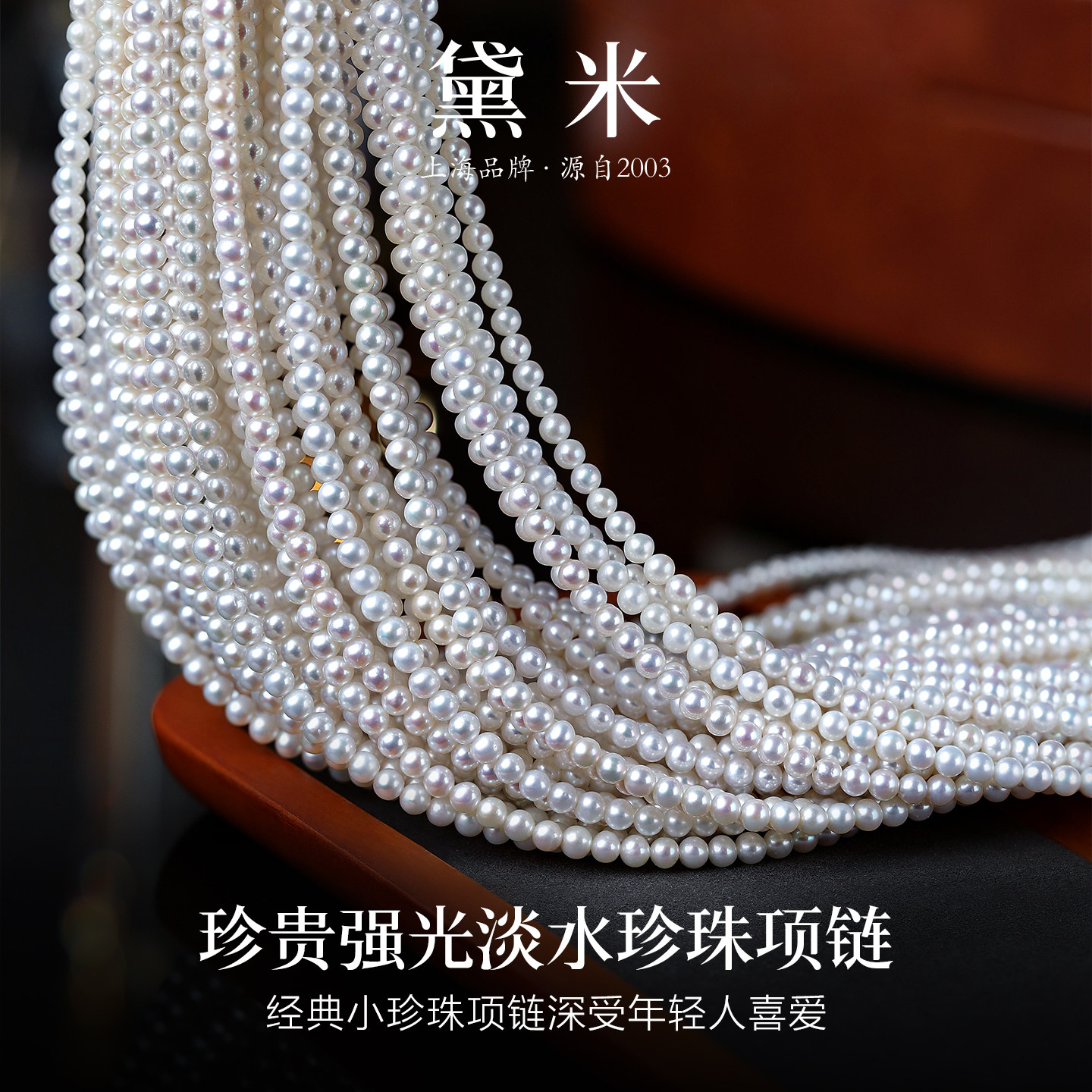 黛米珠宝 清雪3-4mm近圆形baby小米珍珠项链S925银+福利宠粉