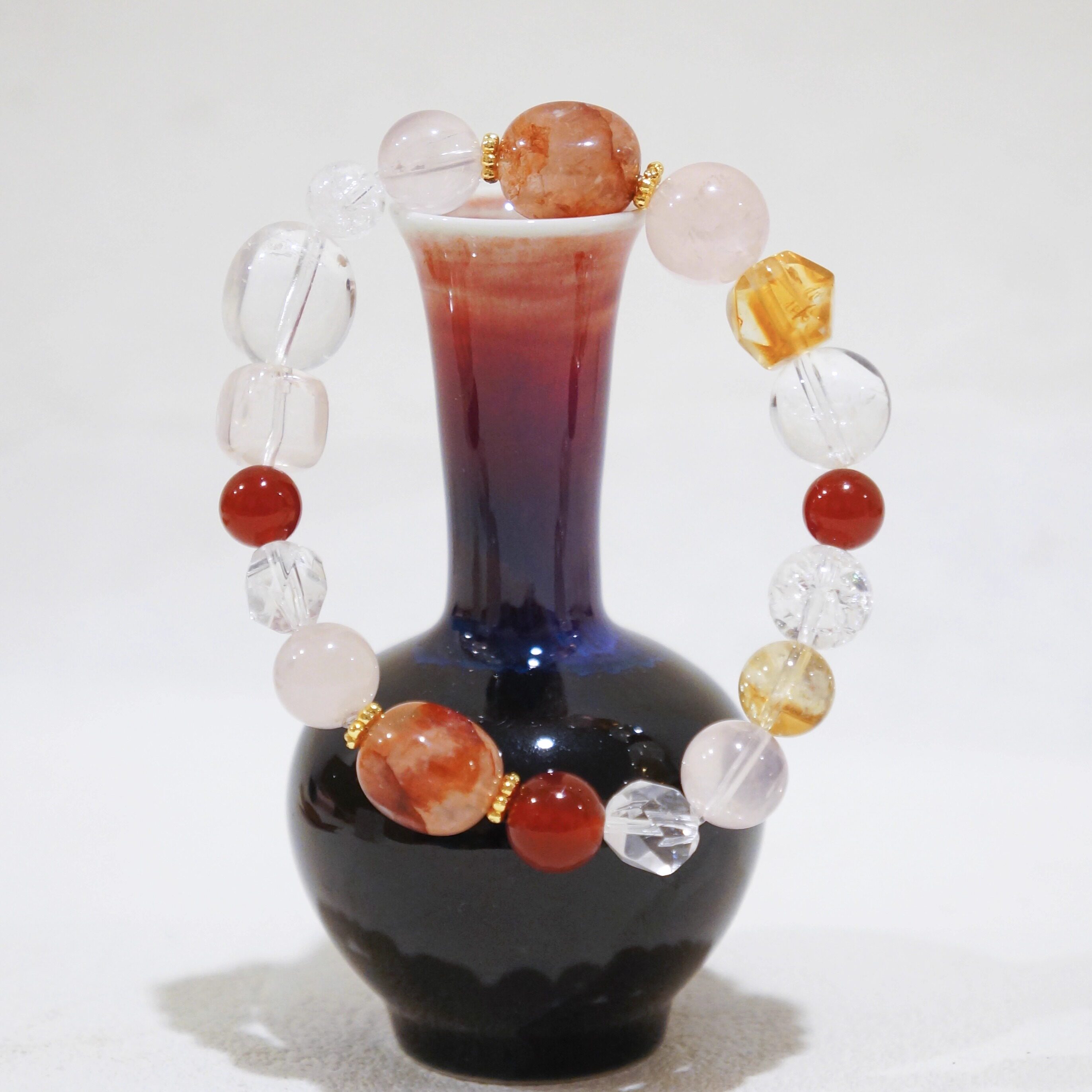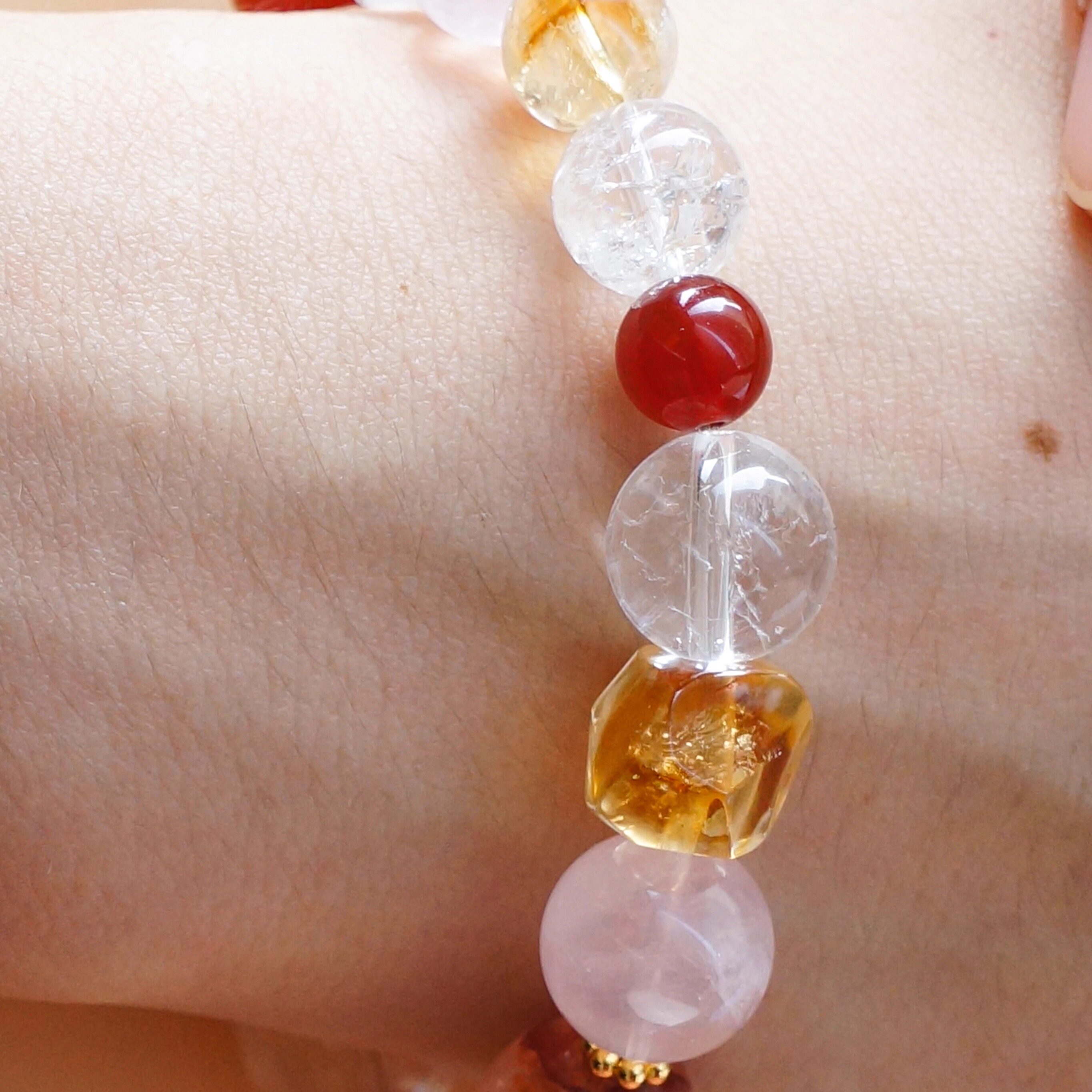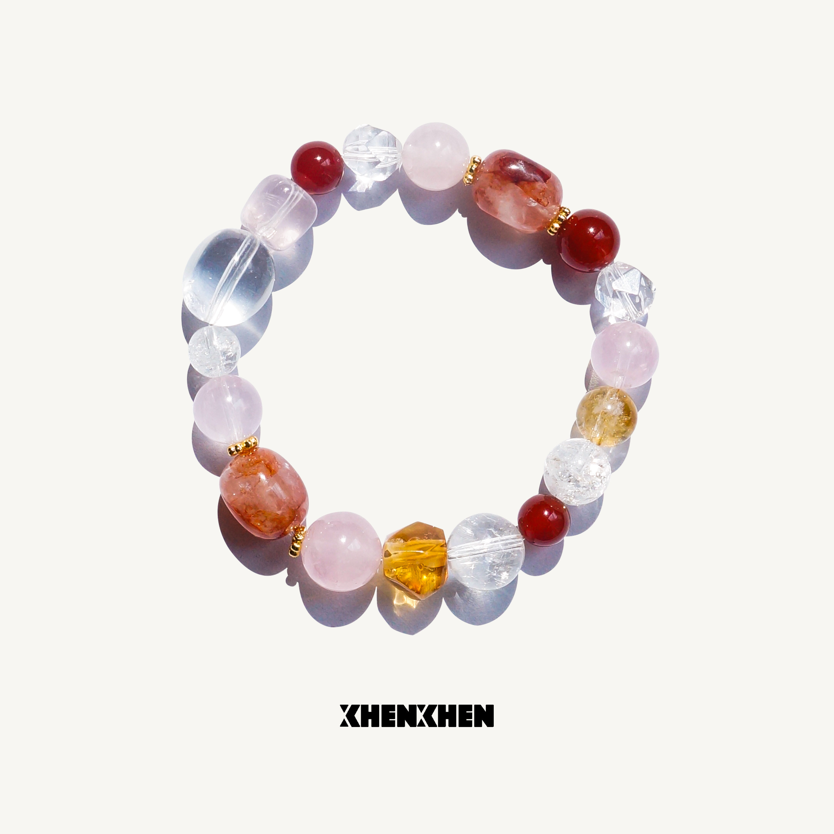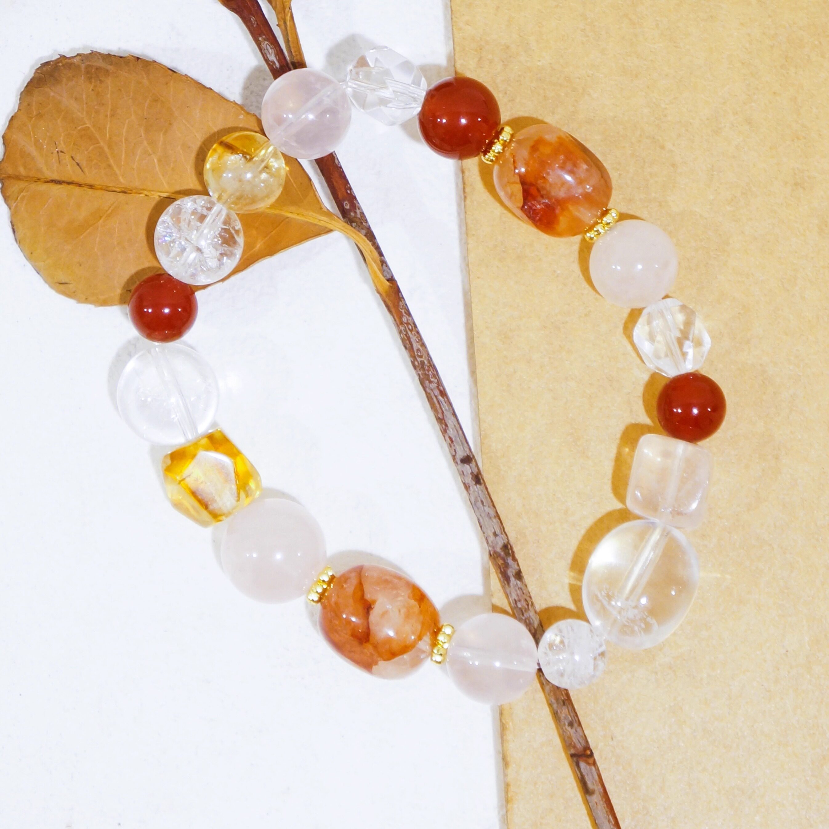 xhenxhen「枫颂」秋韵天然水晶手串红黄胶花手链原创轻奢白水晶女