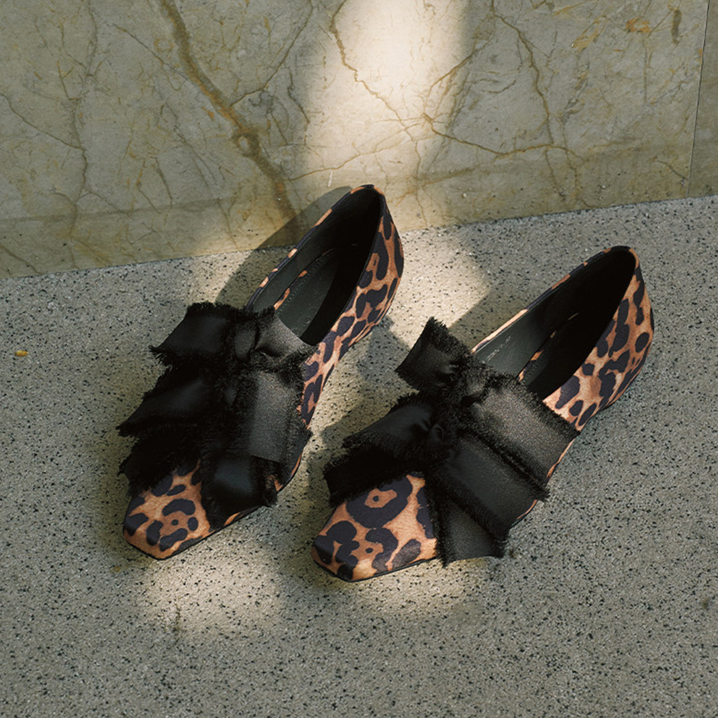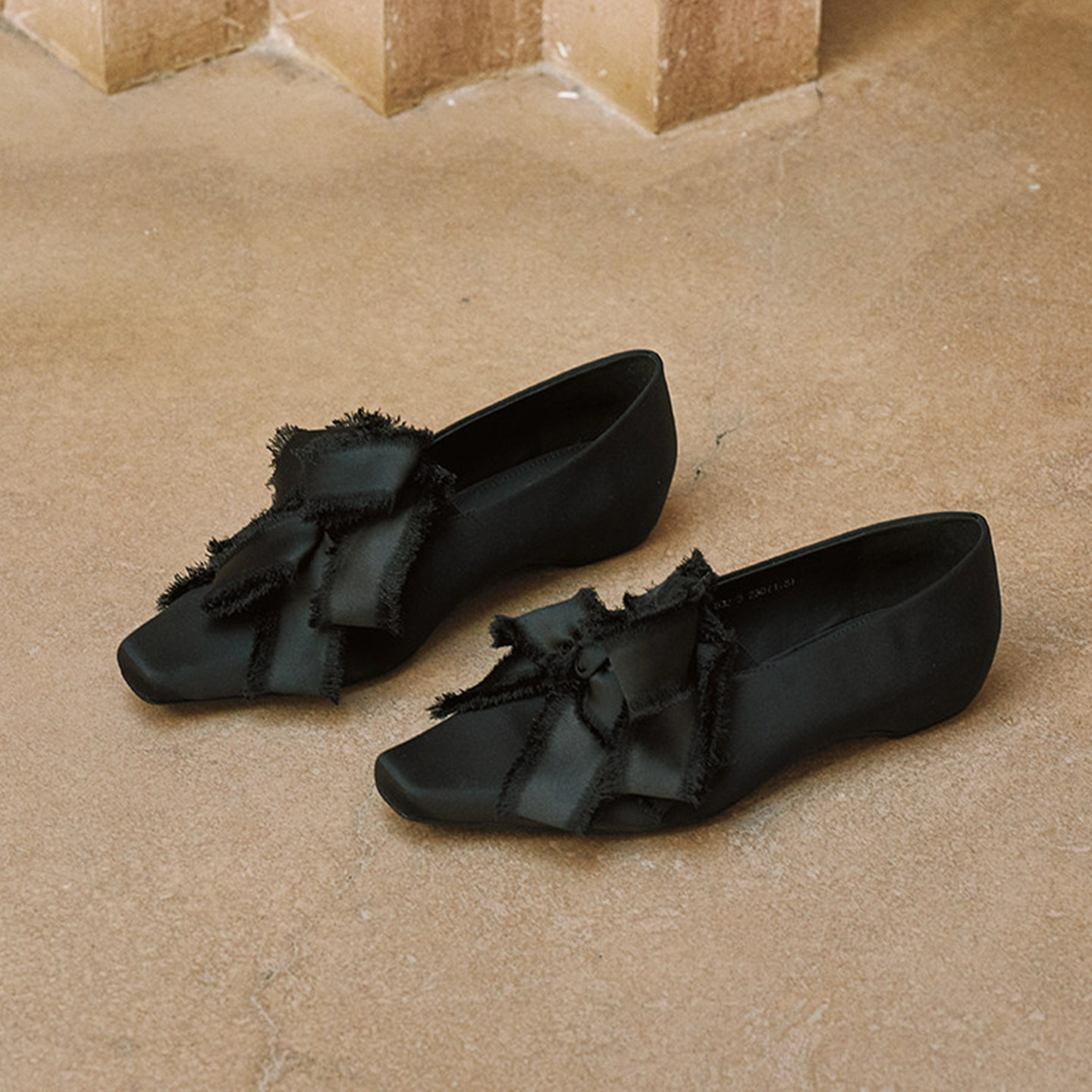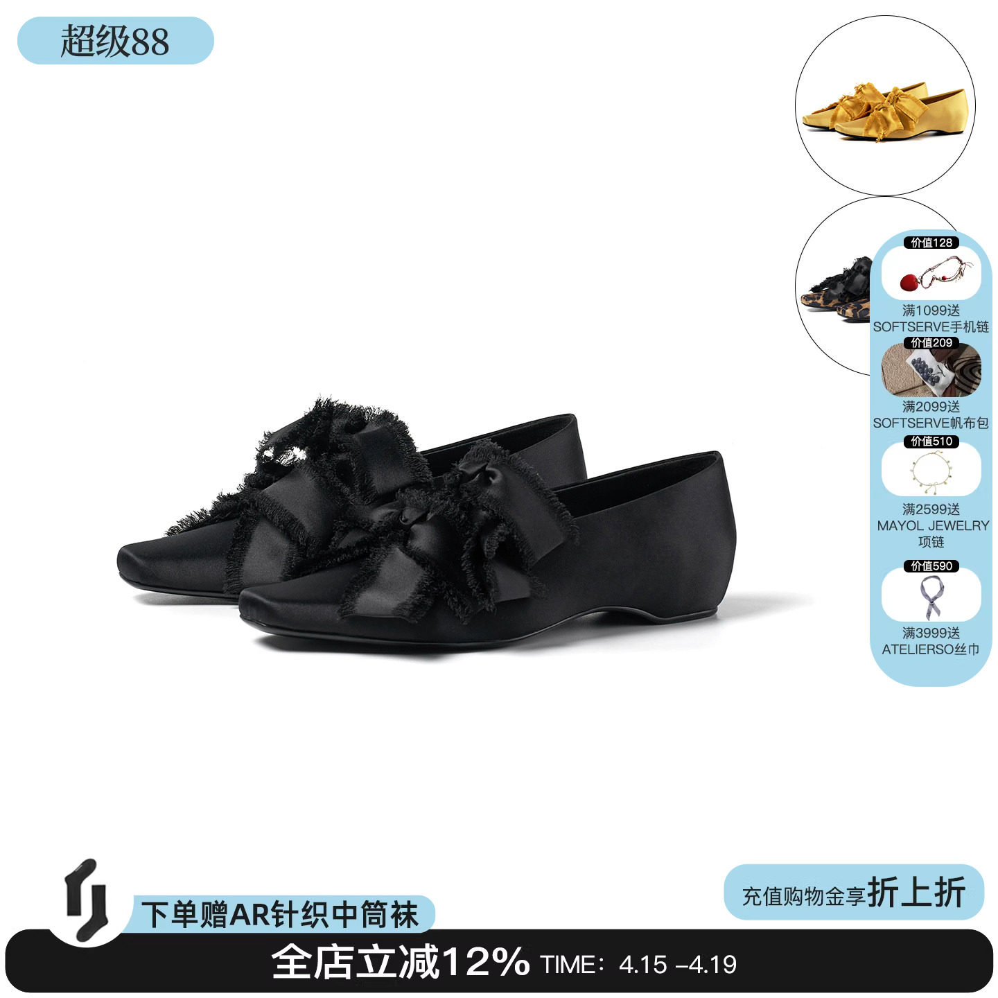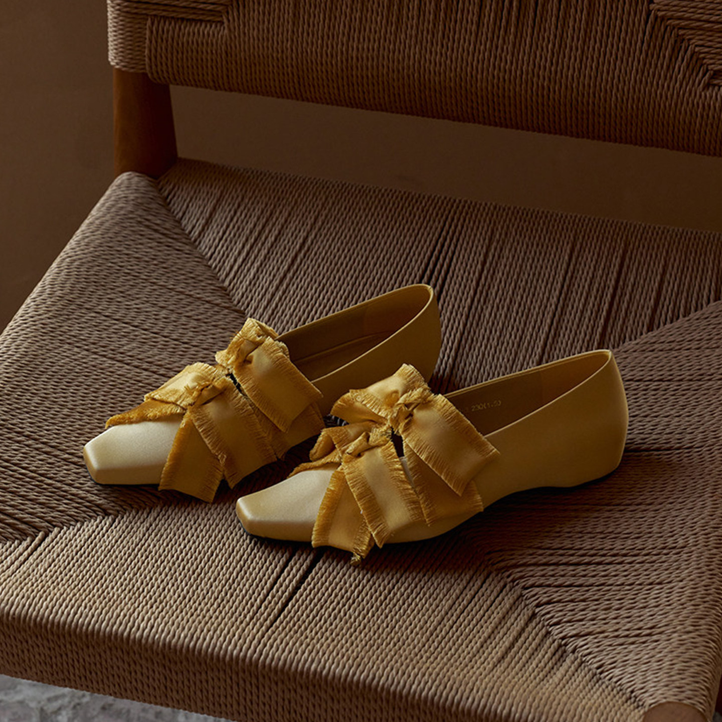 faytobe 26新款复古蝴蝶结芭蕾舞鞋时髦方头浅口舒适平底鞋女