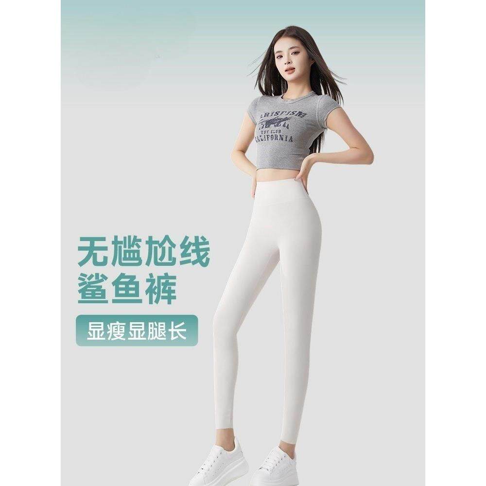 2025新款高腰提臀鲨鱼裤女士冰丝薄款外穿夏季瑜伽运动打底九分裤