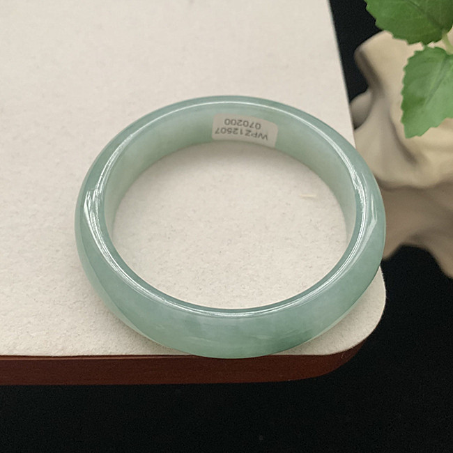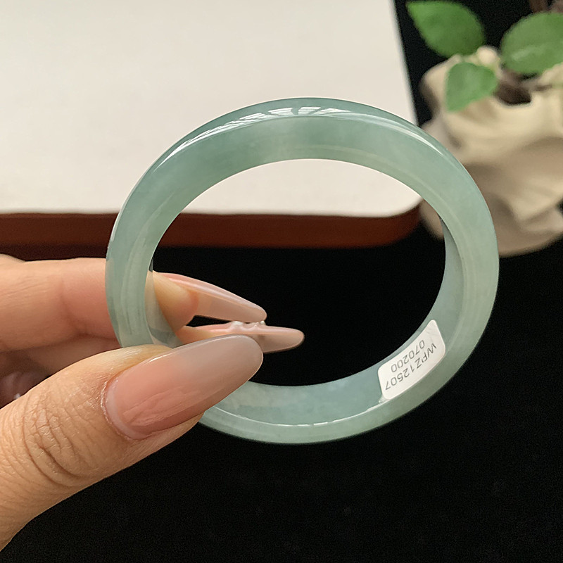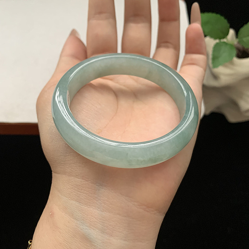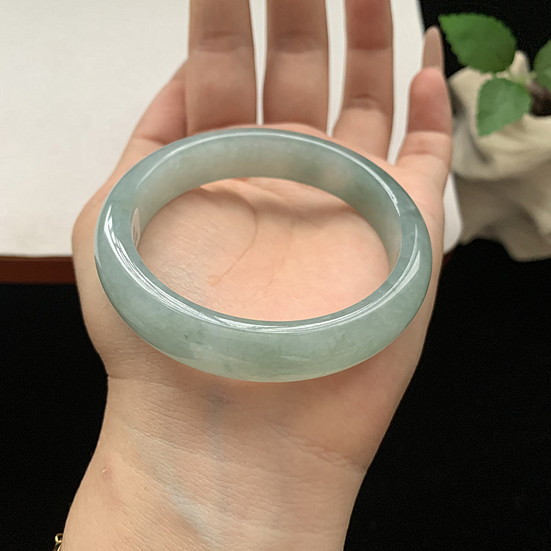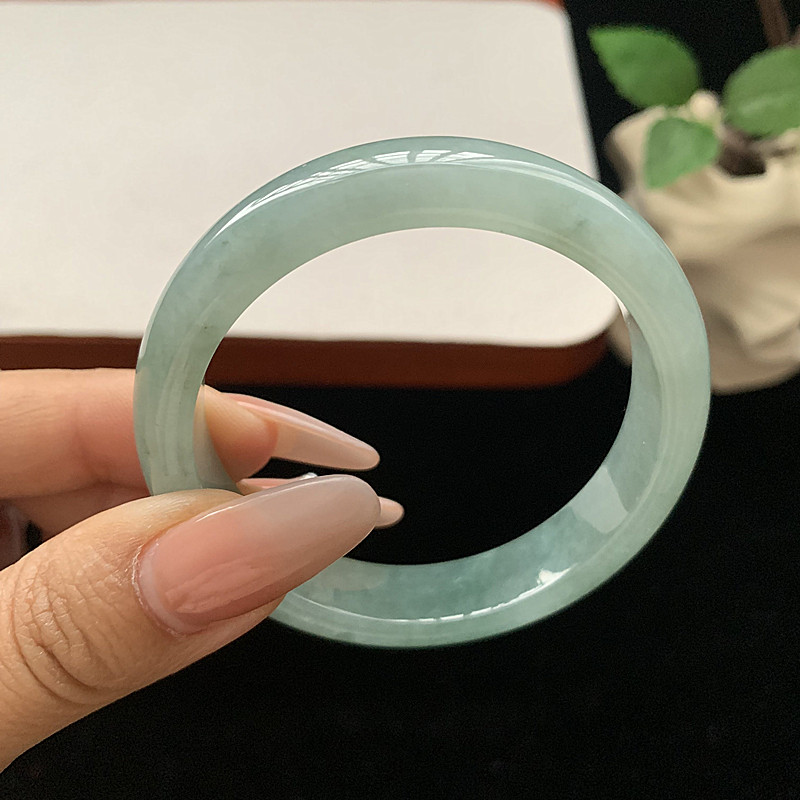 缅甸翡翠手镯A货52.3MM手镯细润冰胶蓝水玉手镯女款珠宝