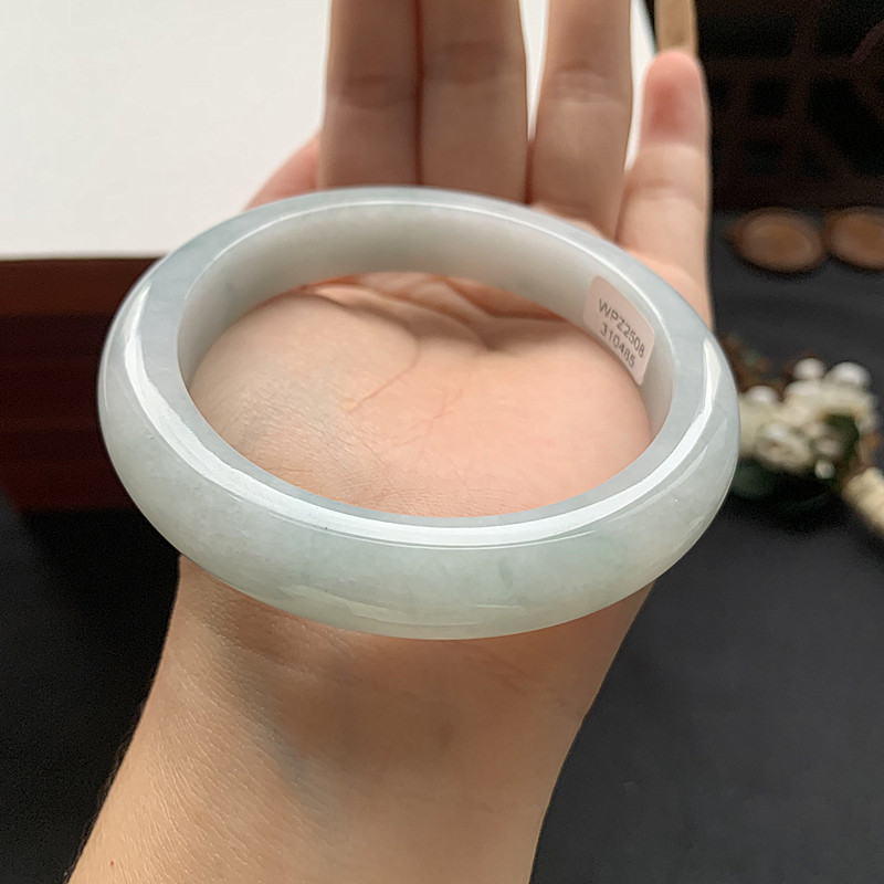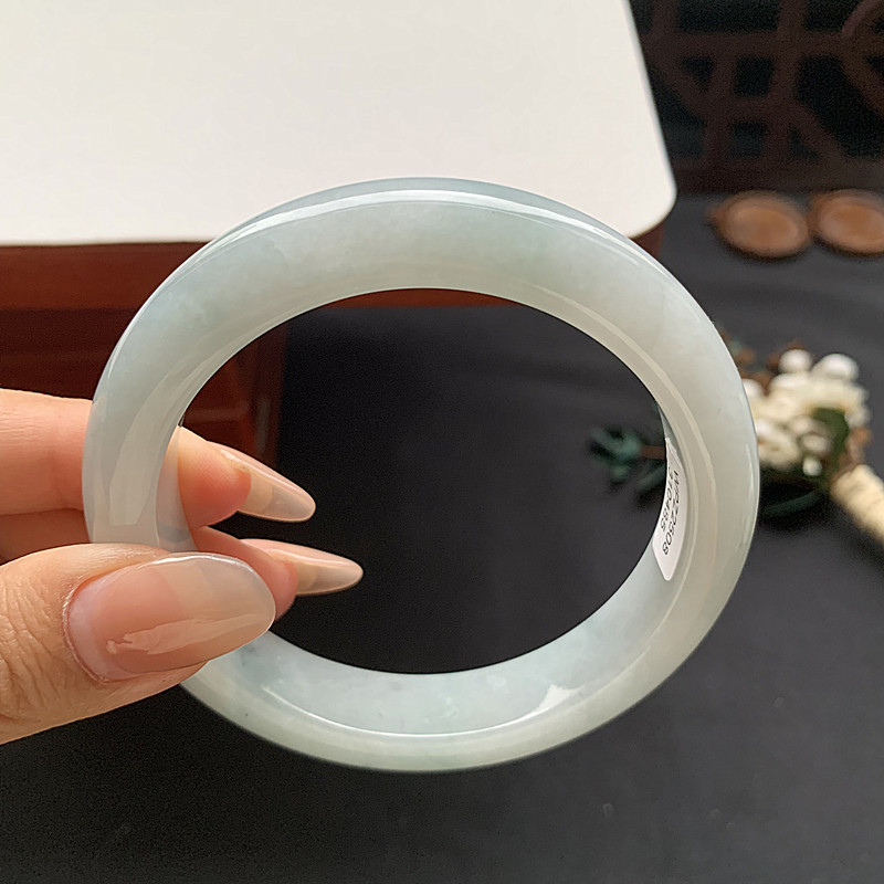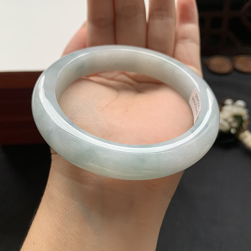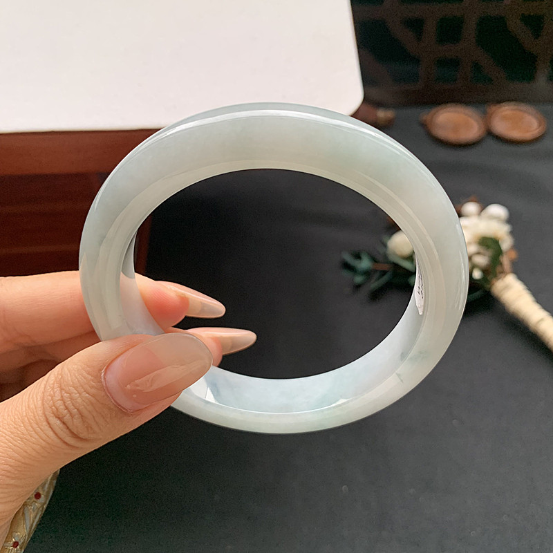 缅甸翡翠手镯A货60.6MM手镯浅细润透飘色花玉手镯女款珠宝