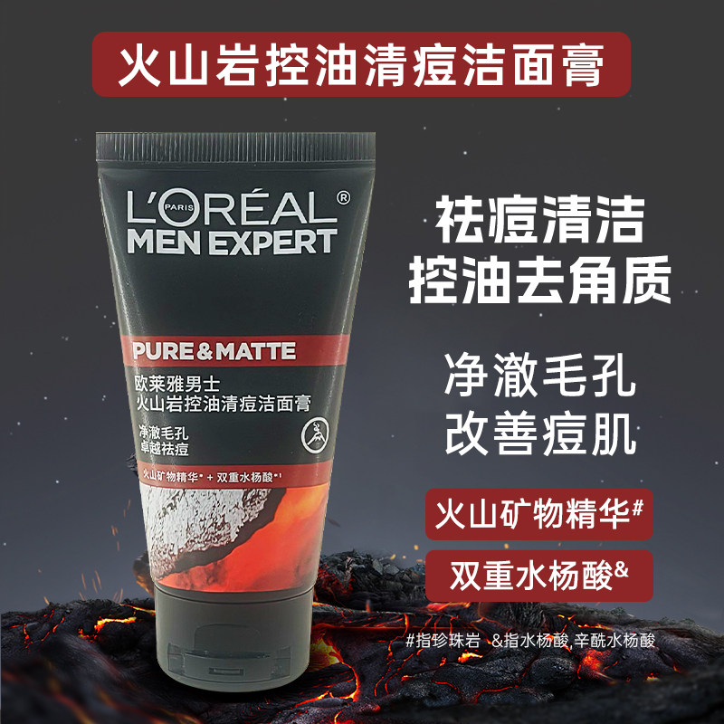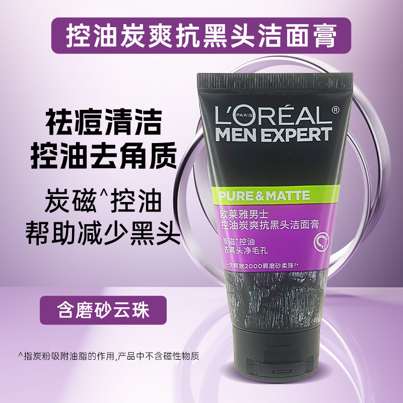 欧莱雅洗面奶男士专用洁面膏控油清洁毛孔减少黑头男生洁面乳50g