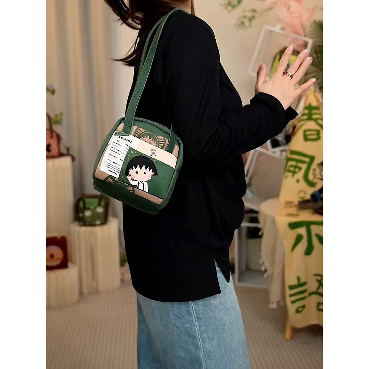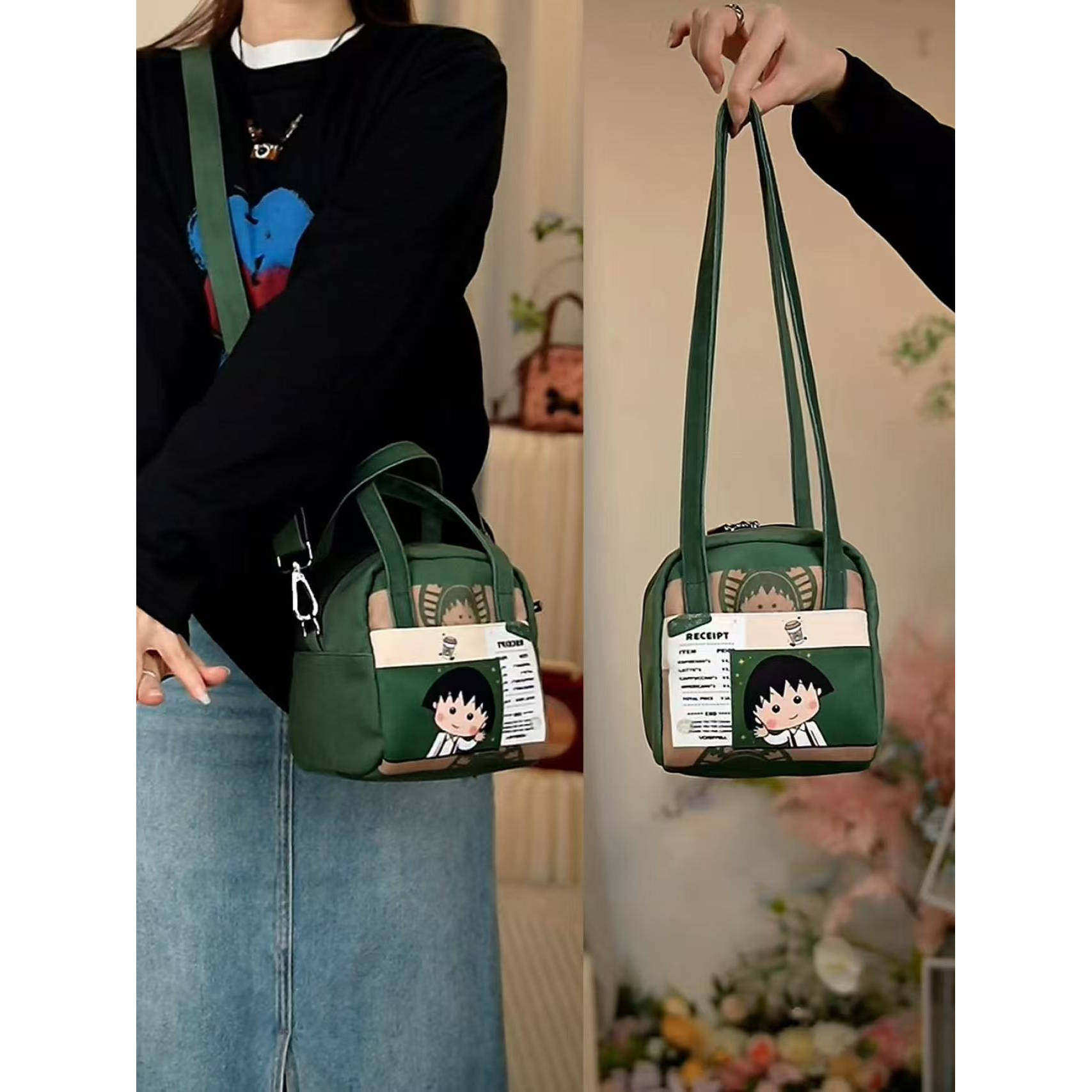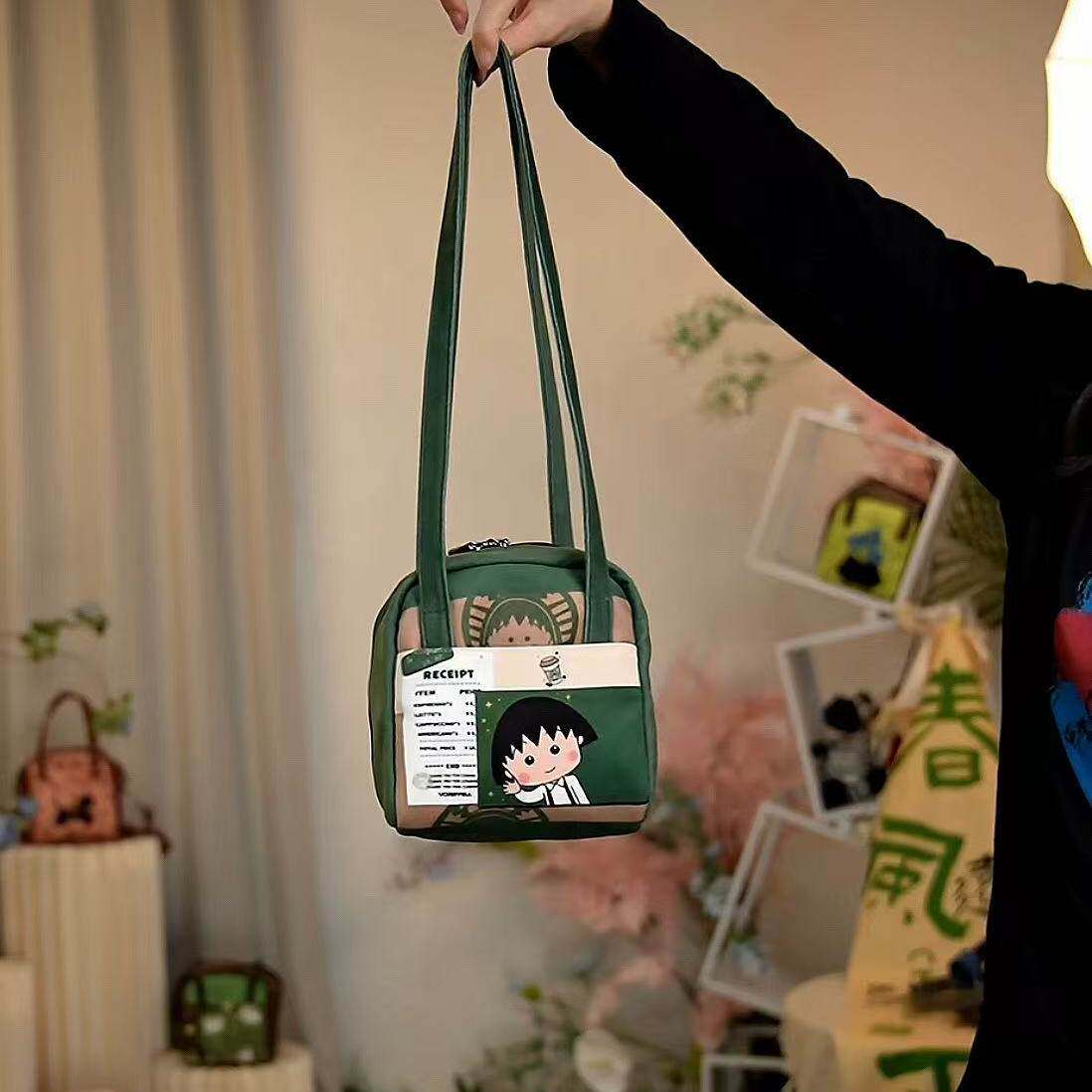 日本代购GP咖啡小丸子斜挎方糖包印花卡通水桶包女单肩百搭斜挎包