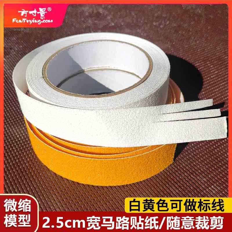 方寸景黄白2.5cm仿真背胶公马路模型黄白线微缩沙盘砂纸可裁剪