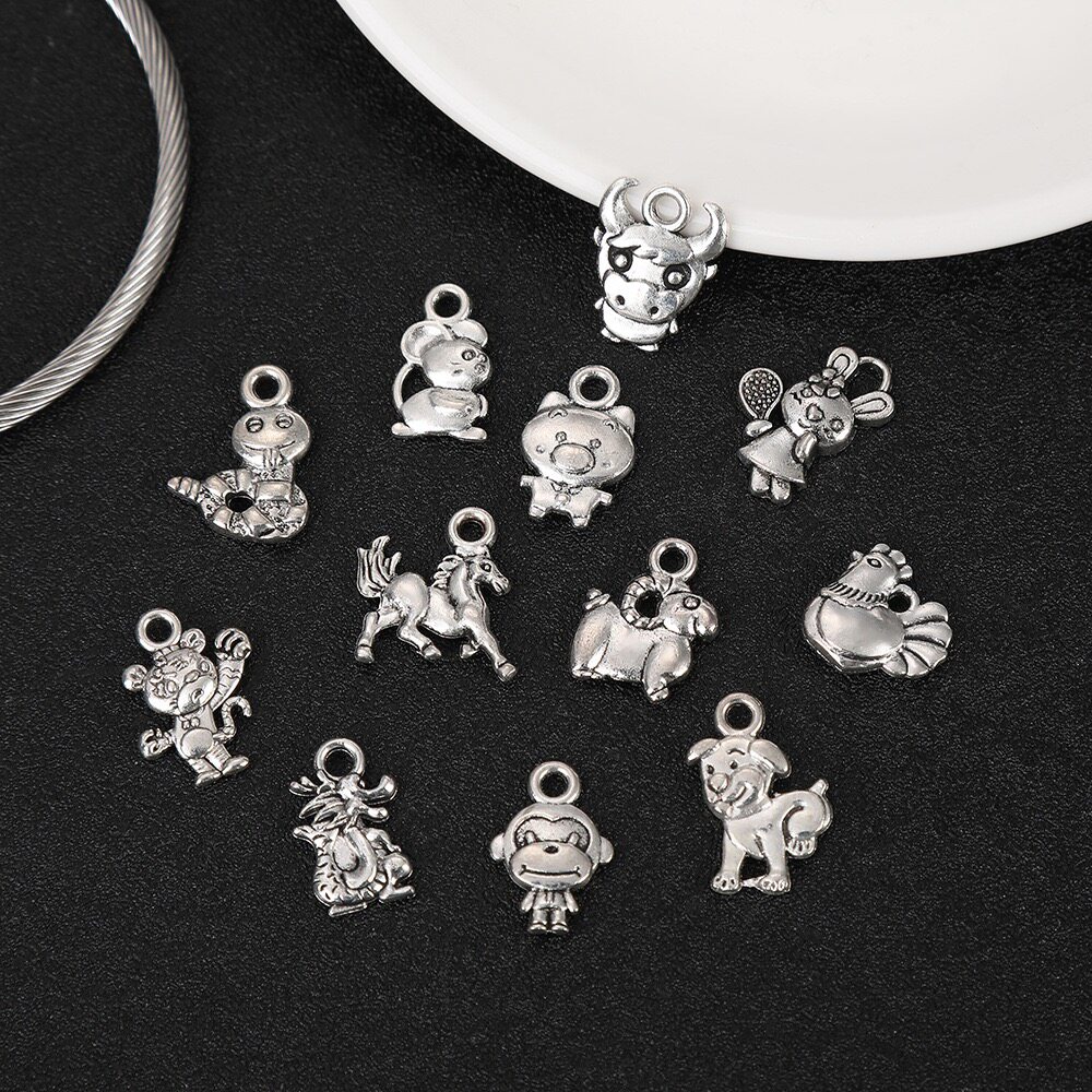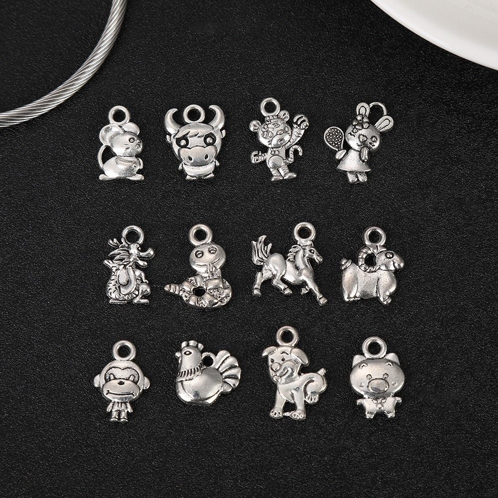 藏银合金十二生肖吊坠复古做旧小吊坠diy手工手链项链配件本命年