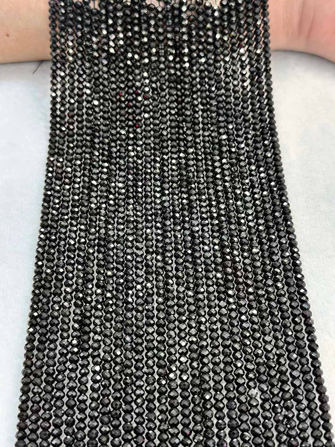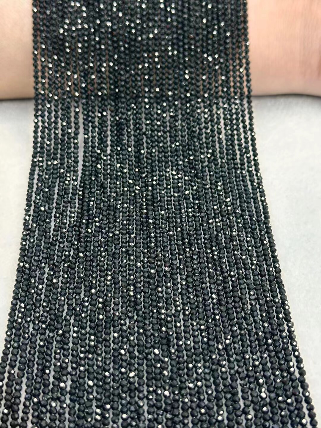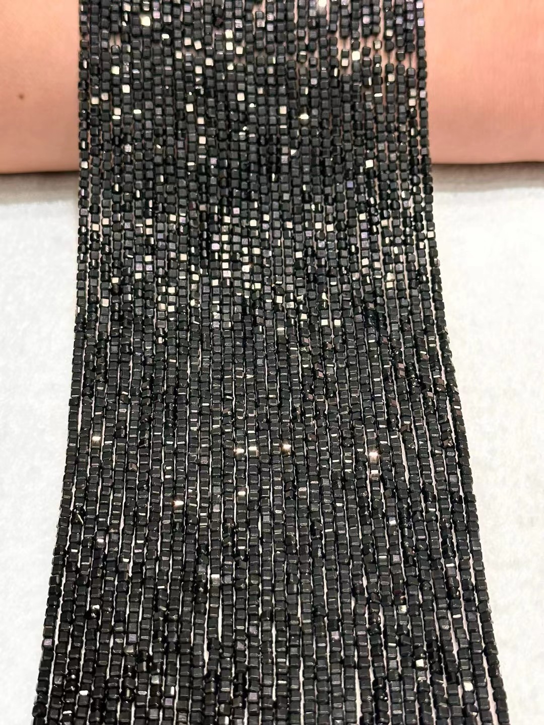 2MM 3MM天然水晶 黑尖晶刻面散珠 盘珠 方糖半成品手链项链配珠