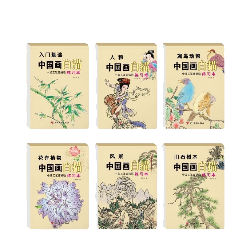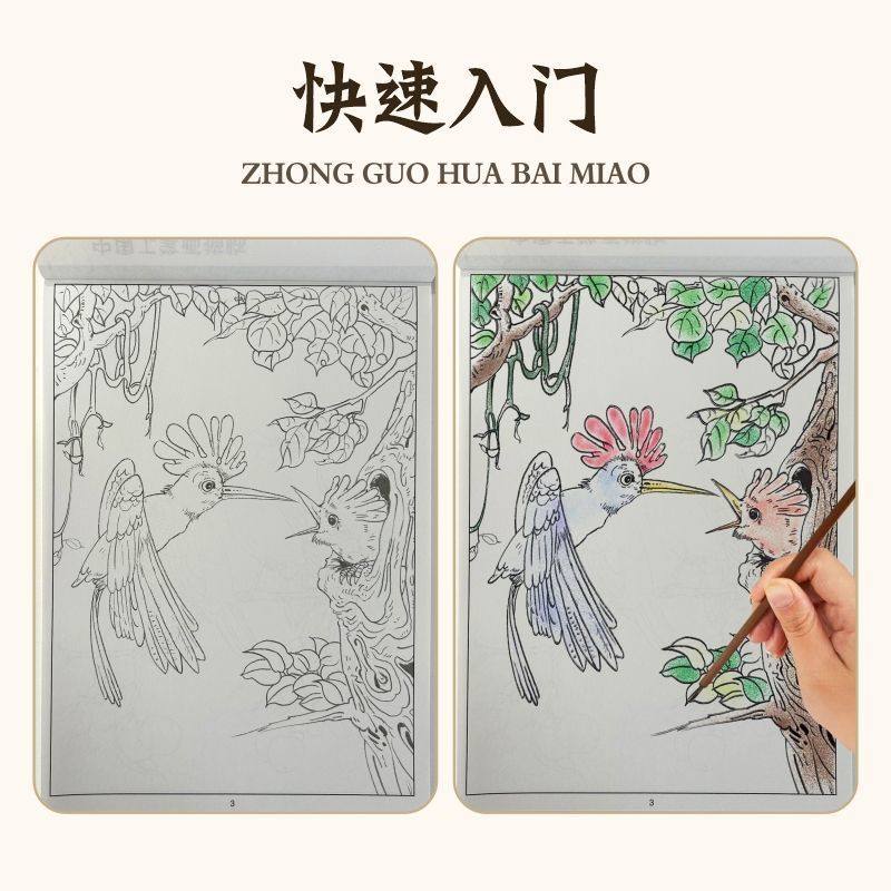 中国画白描入门基础线条练习儿童美术绘画涂色本花鸟鱼虫山水人物