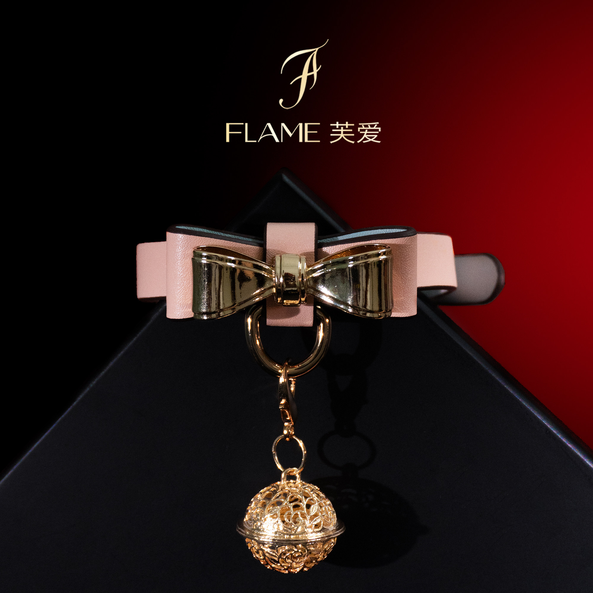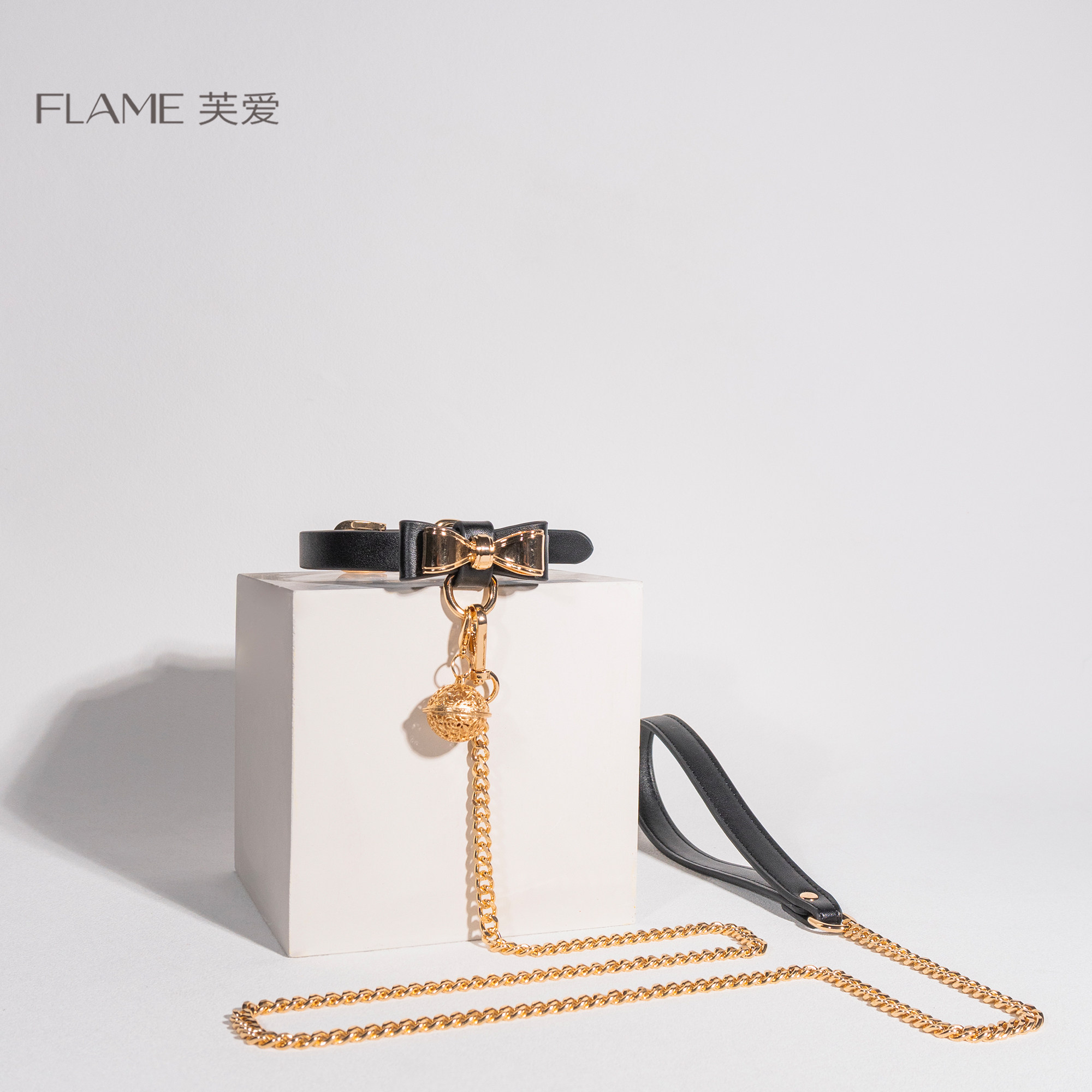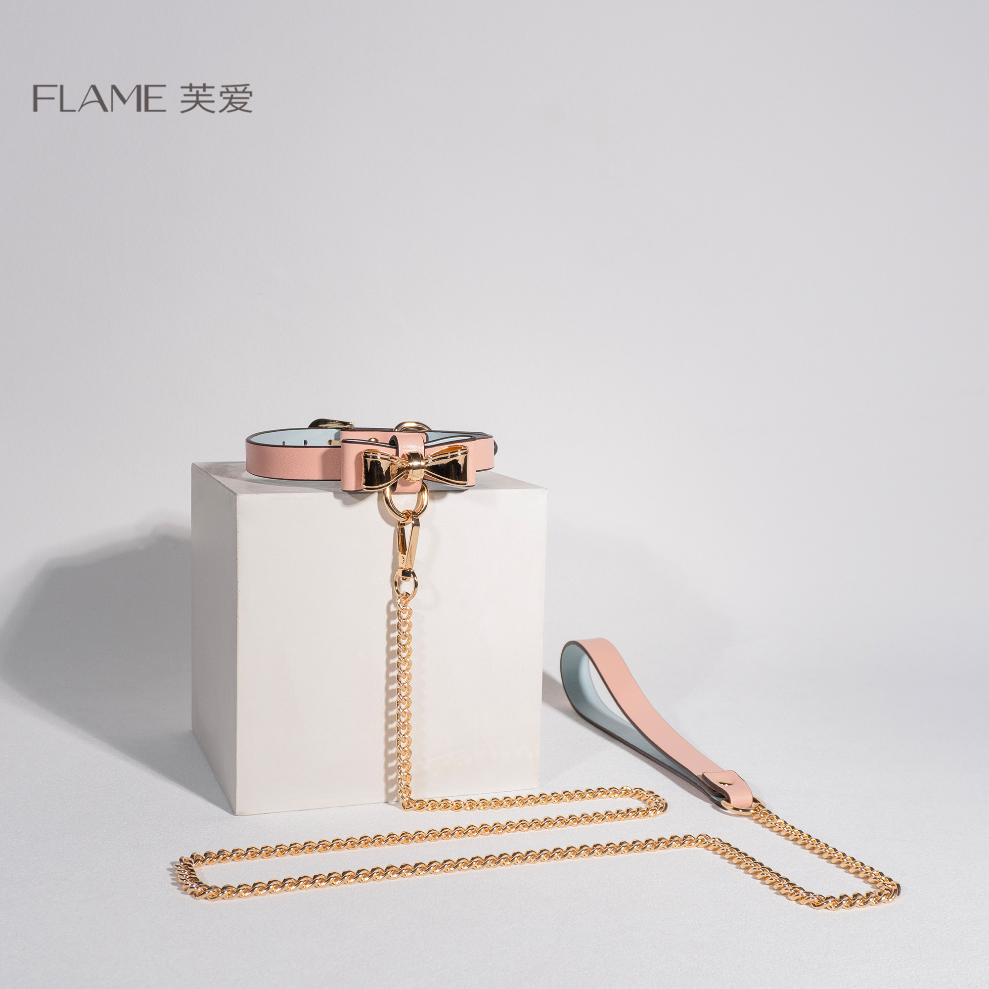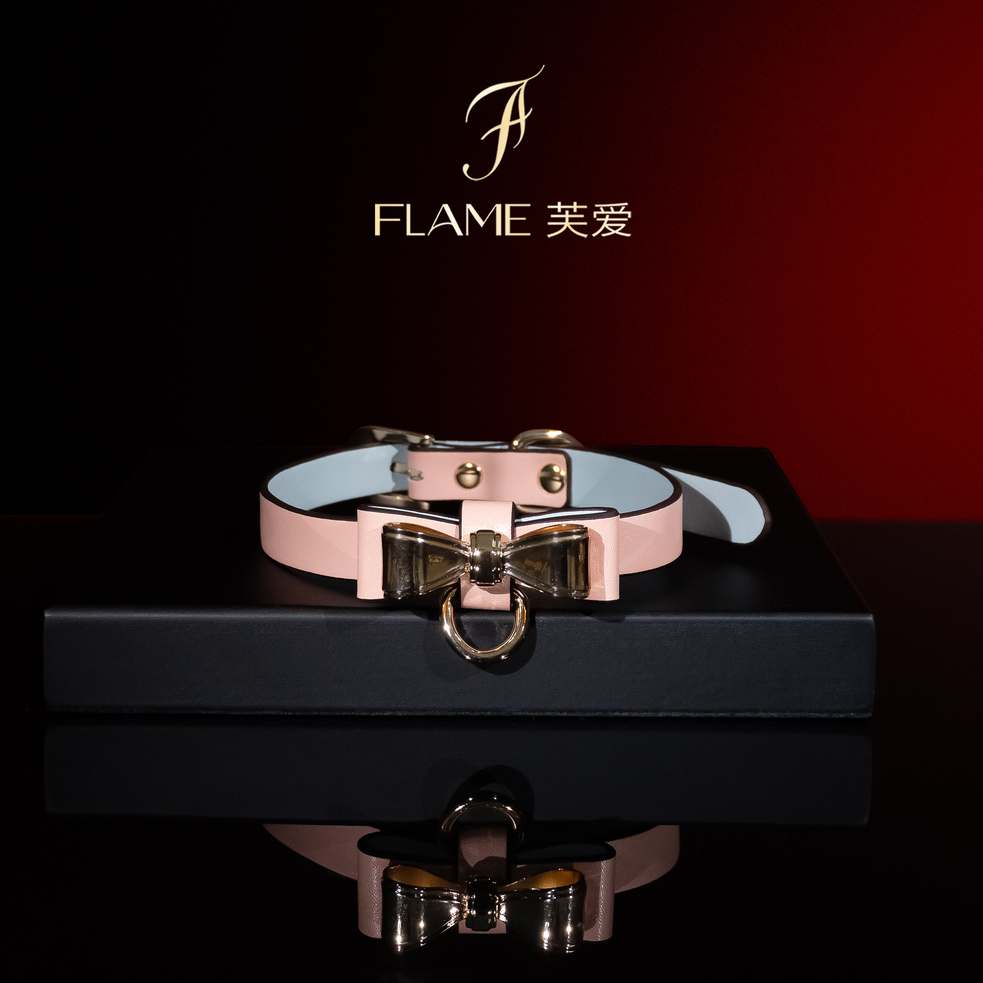 蝴蝶结项圈女皮质choker复古颈环puppy小狗链k8k9牵引绳
