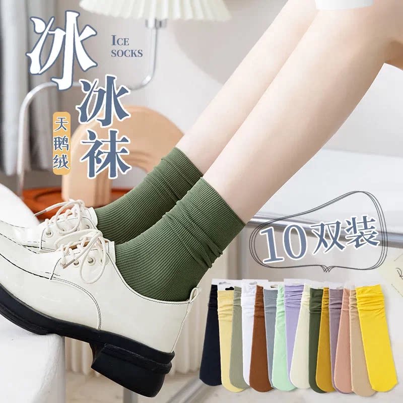 【日常百搭】冰冰袜奶白色袜子女春夏薄款中筒袜透气防臭女堆堆袜