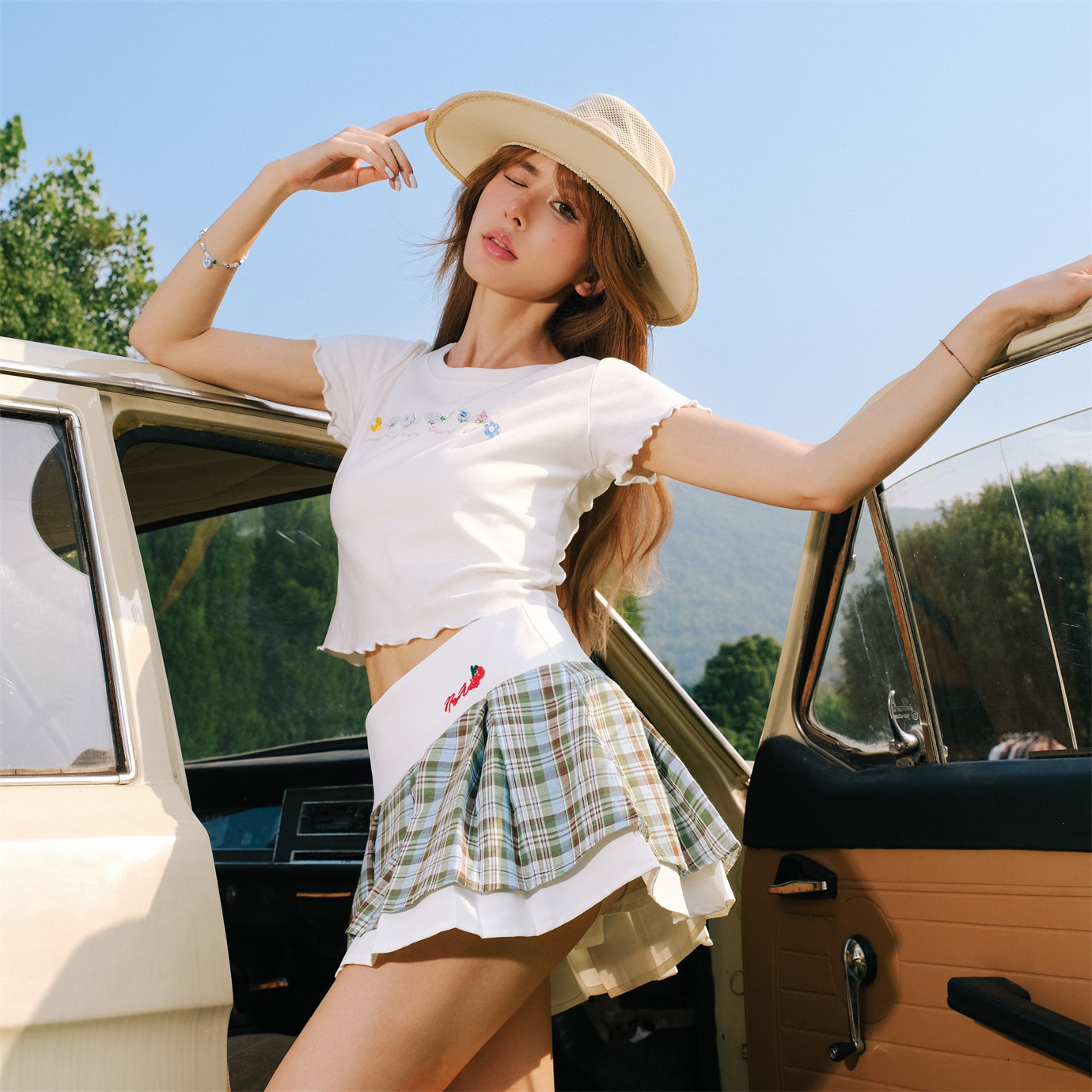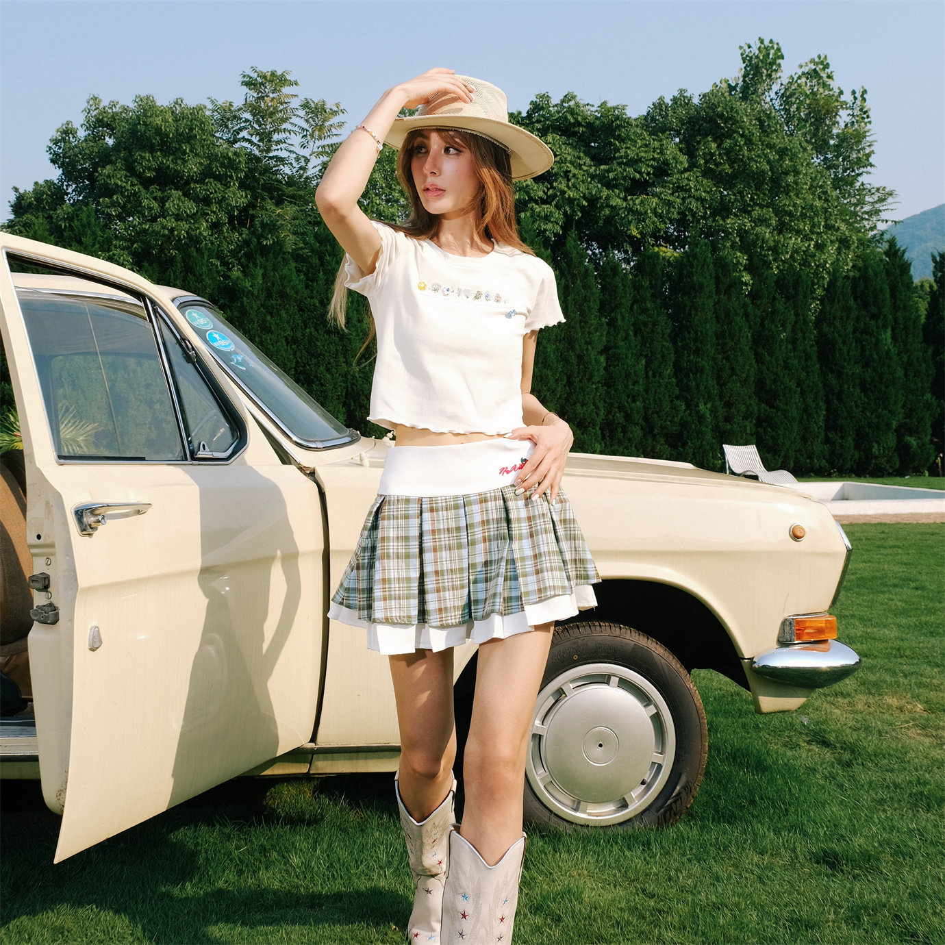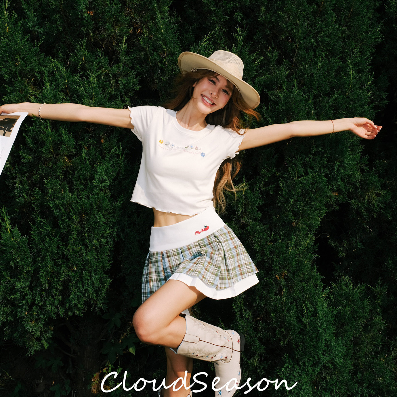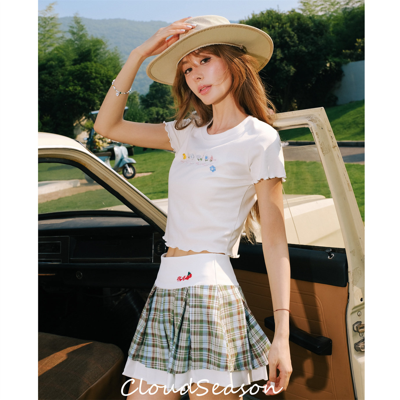 Cloud Season 2024夏季新款趣味珠花T 苏格兰格子裙木百搭兰合集