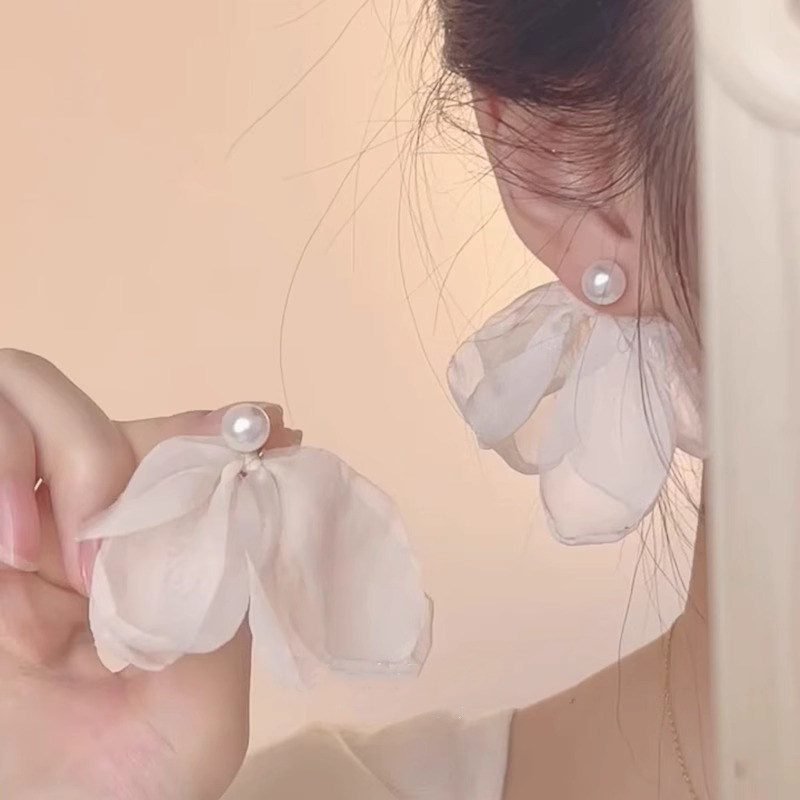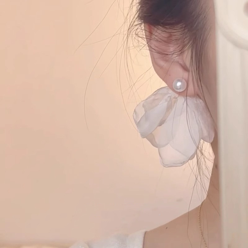 花朵仿珍珠耳环女2026新款爆款高级感小众夸张耳钉两戴式气质耳饰