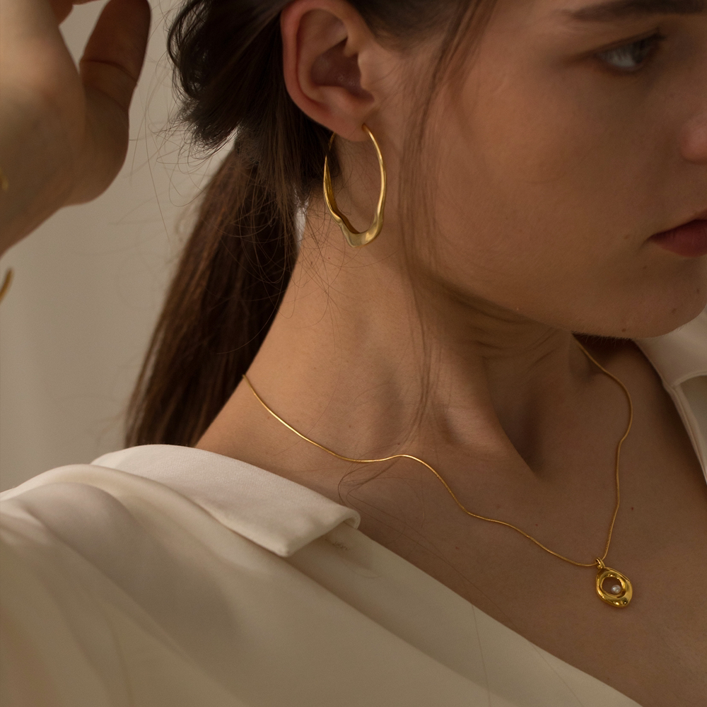 UNFOLDS金色蛇骨链女不规则圆形吊坠小众轻奢链条素链项链63 OAK