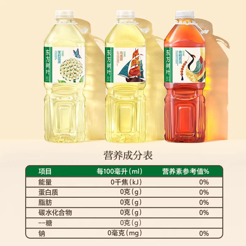 农夫山泉东方树叶1.5L*6瓶茉莉花茶家庭分享装无糖茶饮料整箱批