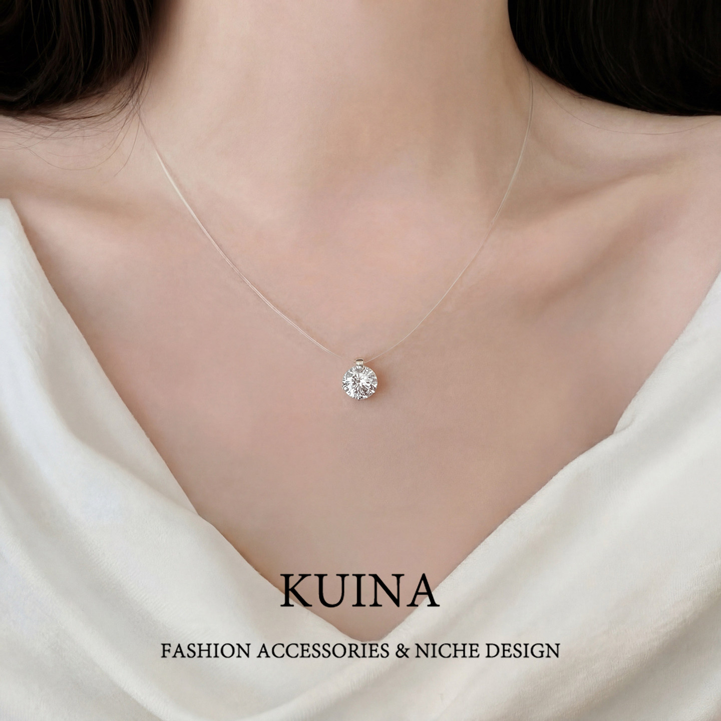人鱼之泪项链女轻奢闪钻叠戴颈链隐形鱼线锁骨链简约高级感配饰品