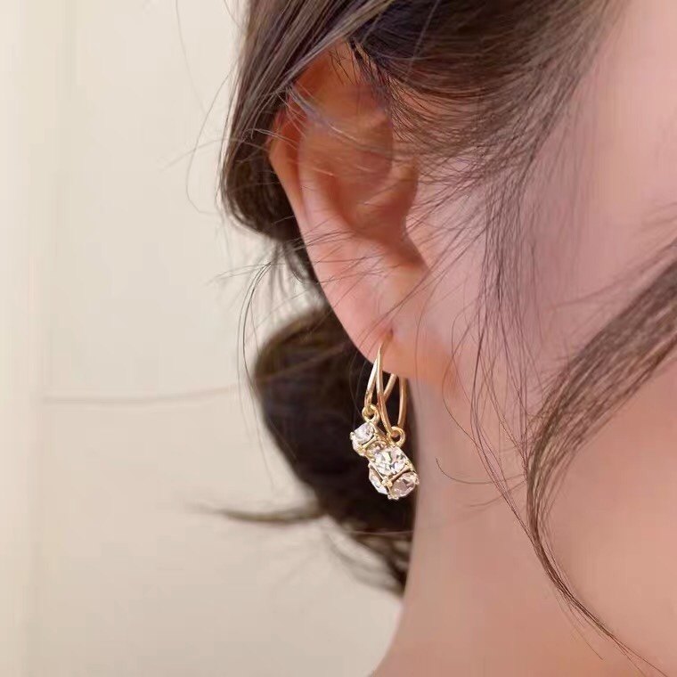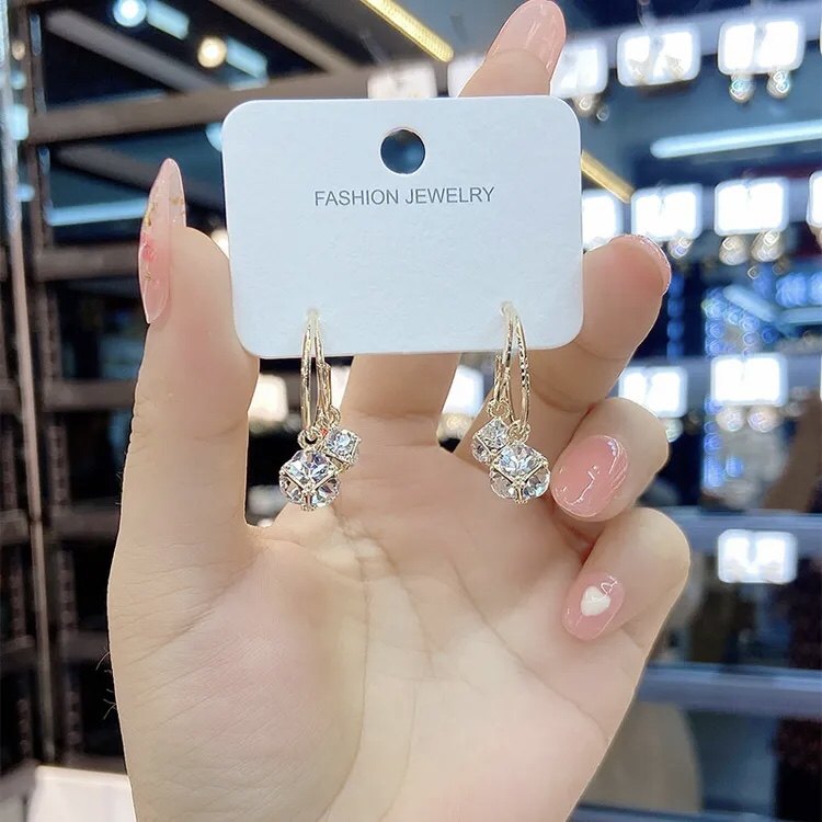 新S925银针气质时尚水钻球球耳钉女韩国东大门简约风百搭个性耳环
