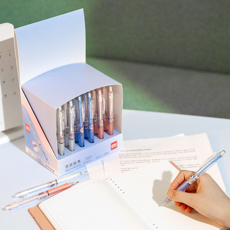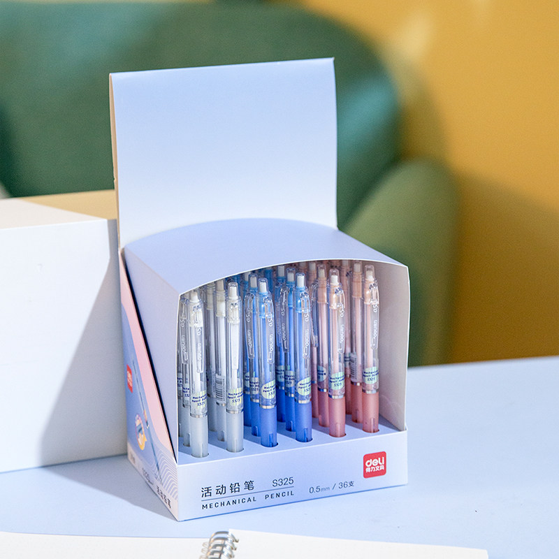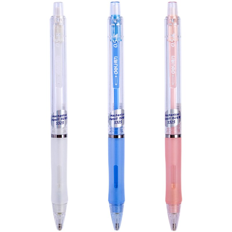 得力S325活动按动铅笔0.5mm铅芯学生不易断自动铅笔带橡皮糖果色