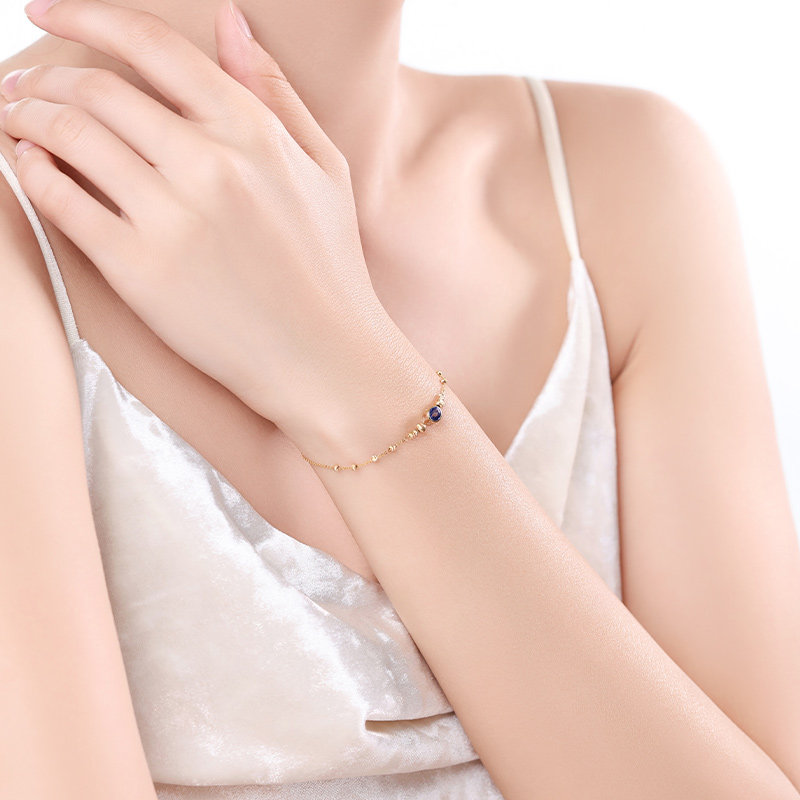 可卿珠宝 悦晗 蓝宝石手链女18k金镶嵌款彩宝手链手饰正品送礼物