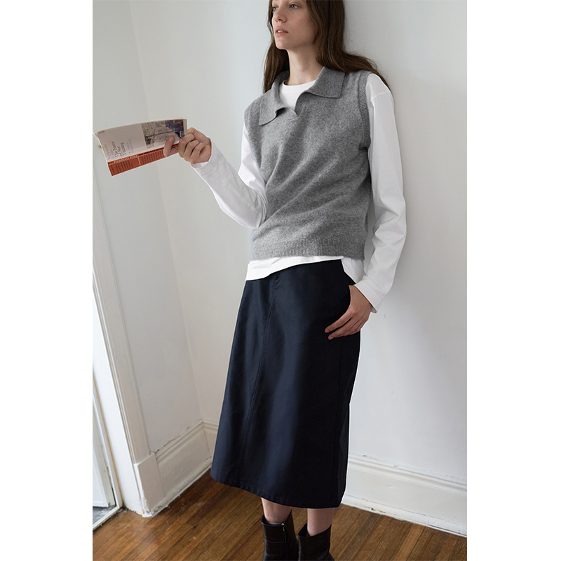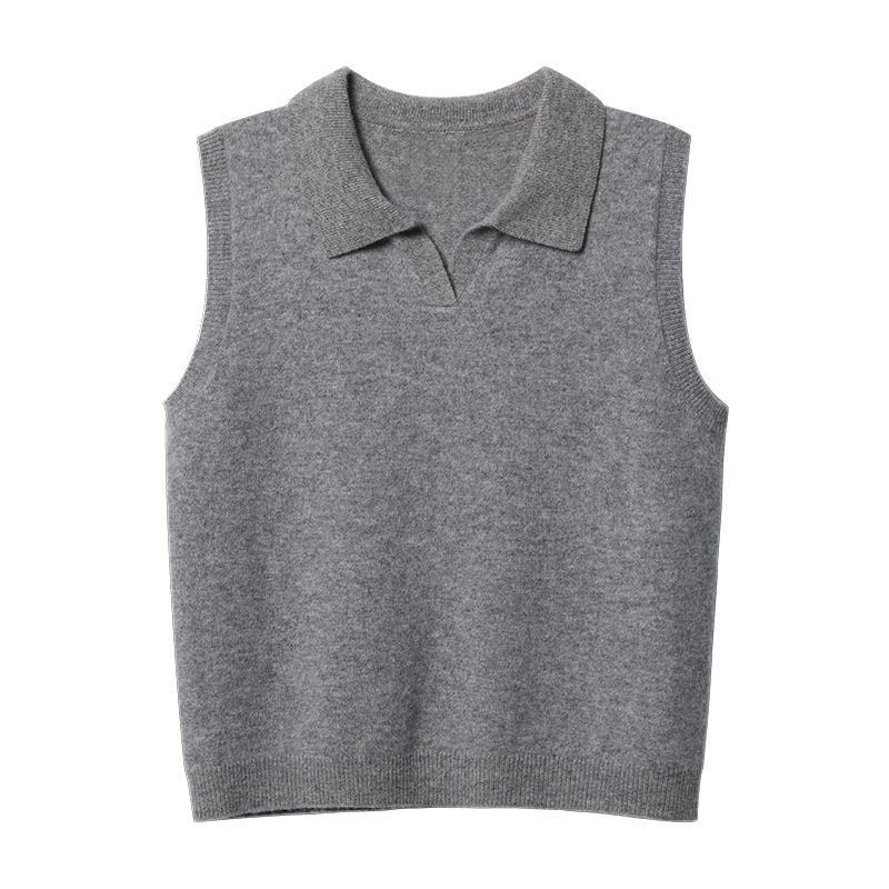 PLANITES100%羊毛马甲女知识分子慵懒风无袖针织背心格雷系上衣