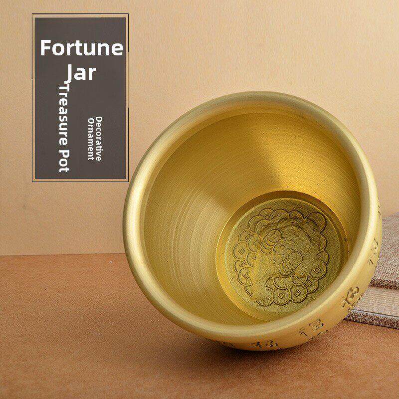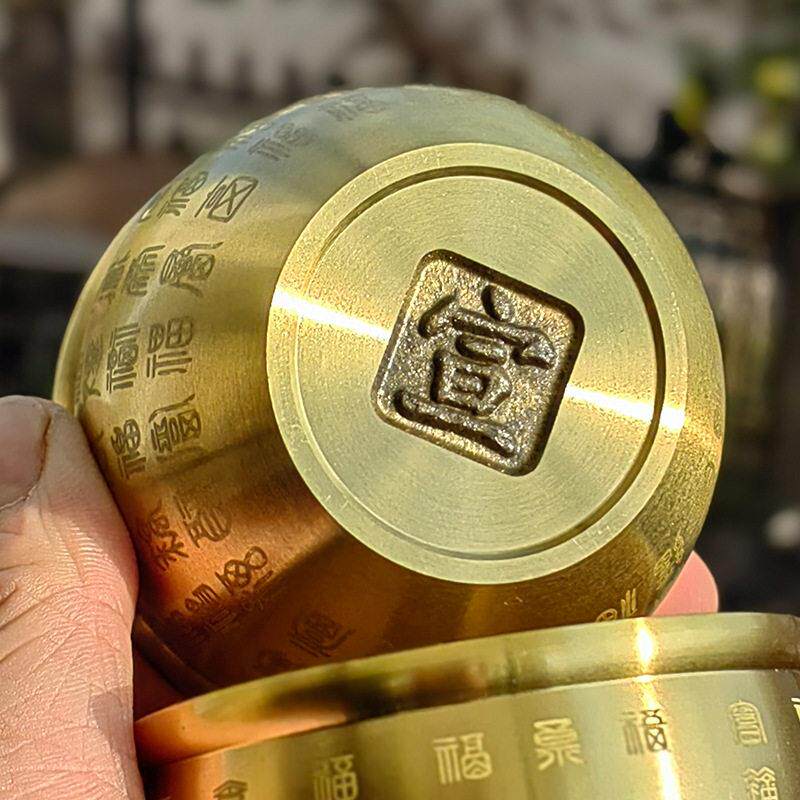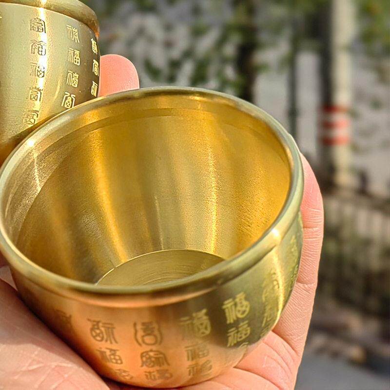 纯铜白富铜圆柱聚宝盆铜碗酒杯客厅家居装饰饰品店柜台装饰饰品