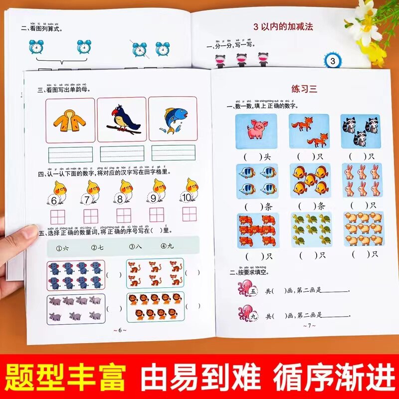 幼儿园暑假作业中大班幼小衔接数学语言拼音描红本写字本练习册