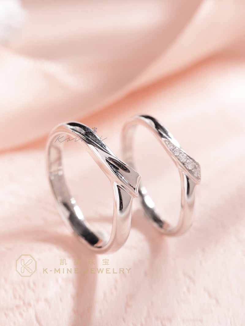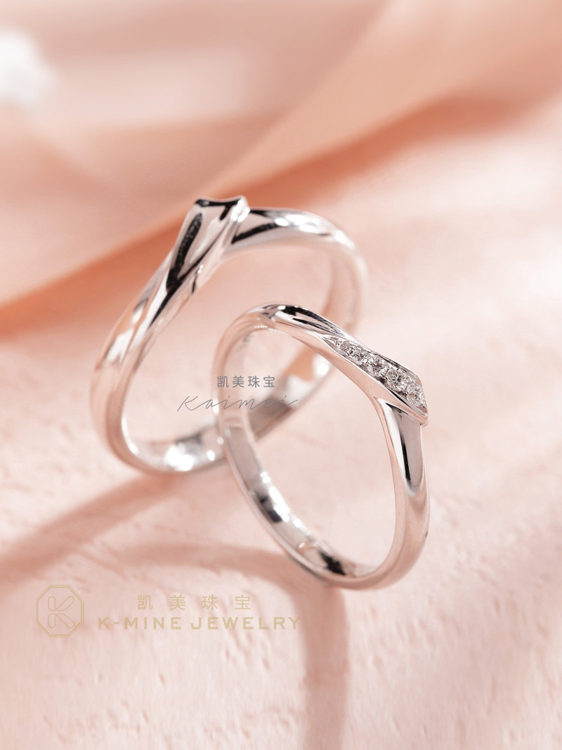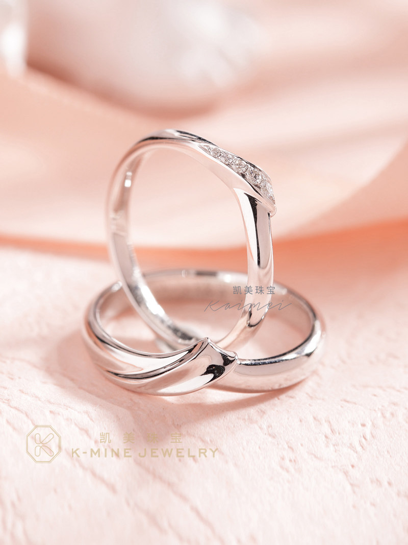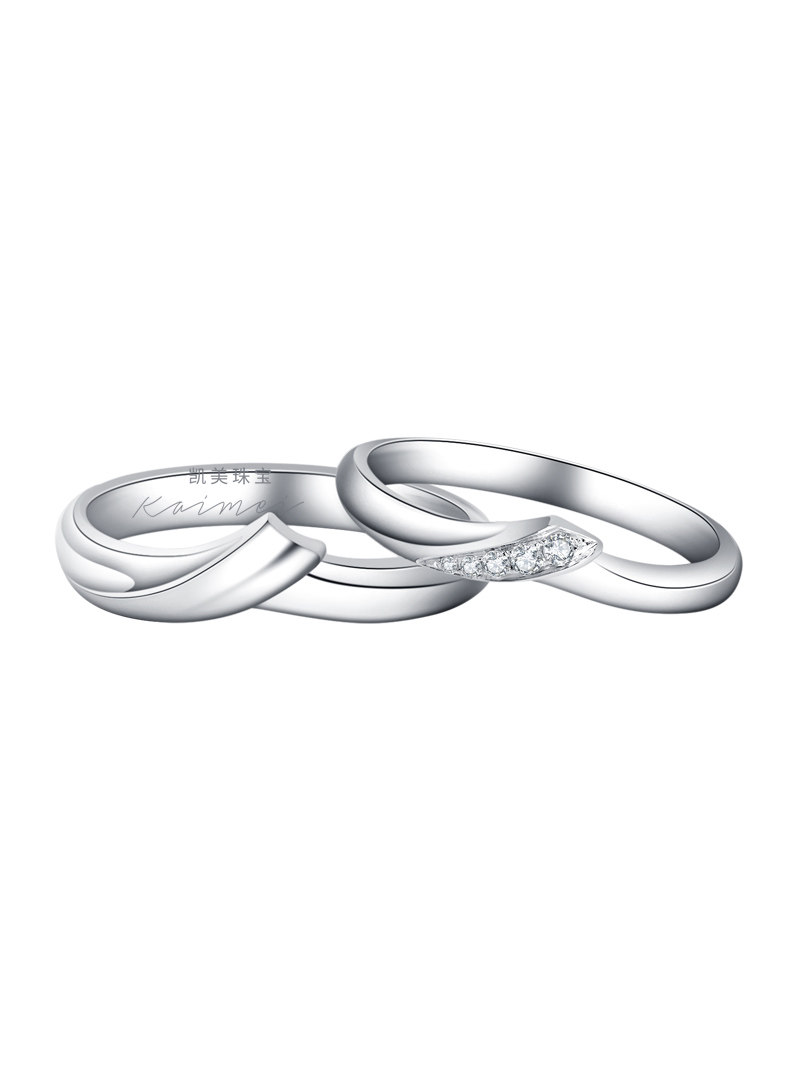 凯美珠宝对戒情侣款18K白金V形钻石订婚求婚戒指一对正品原创设计