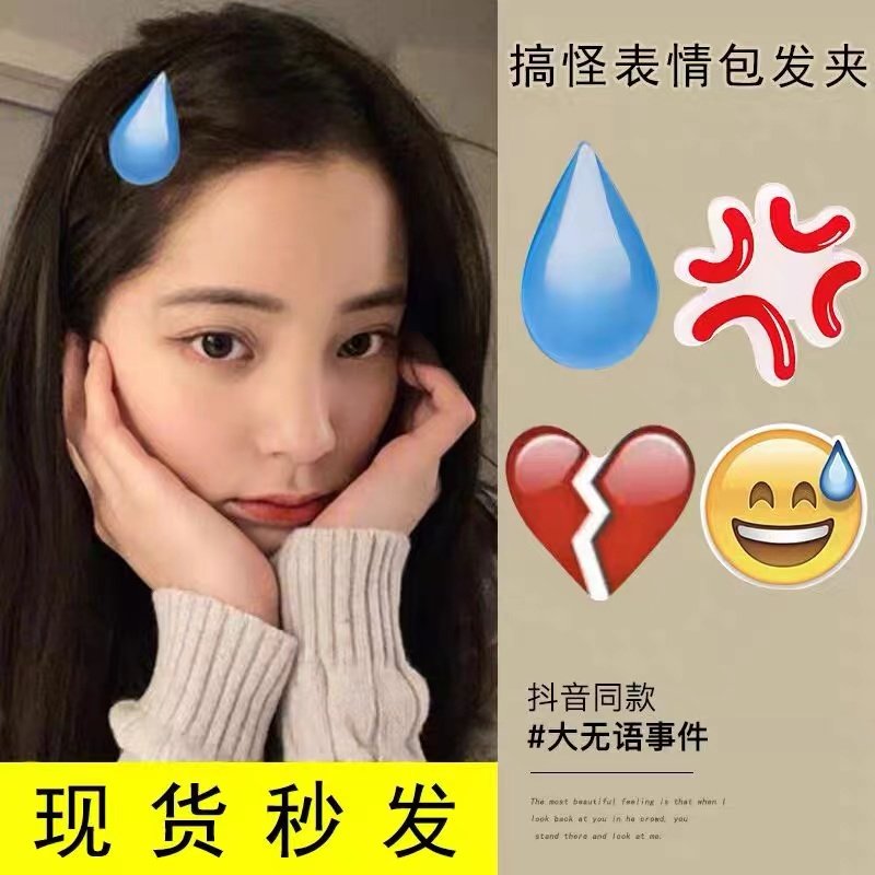 滴汗发夹女黄豆大无语水滴边夹冷汗emoji表情包发卡搞怪创意发饰