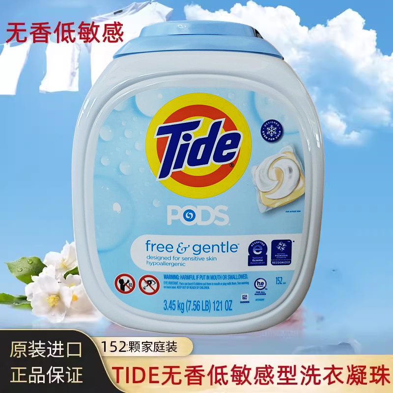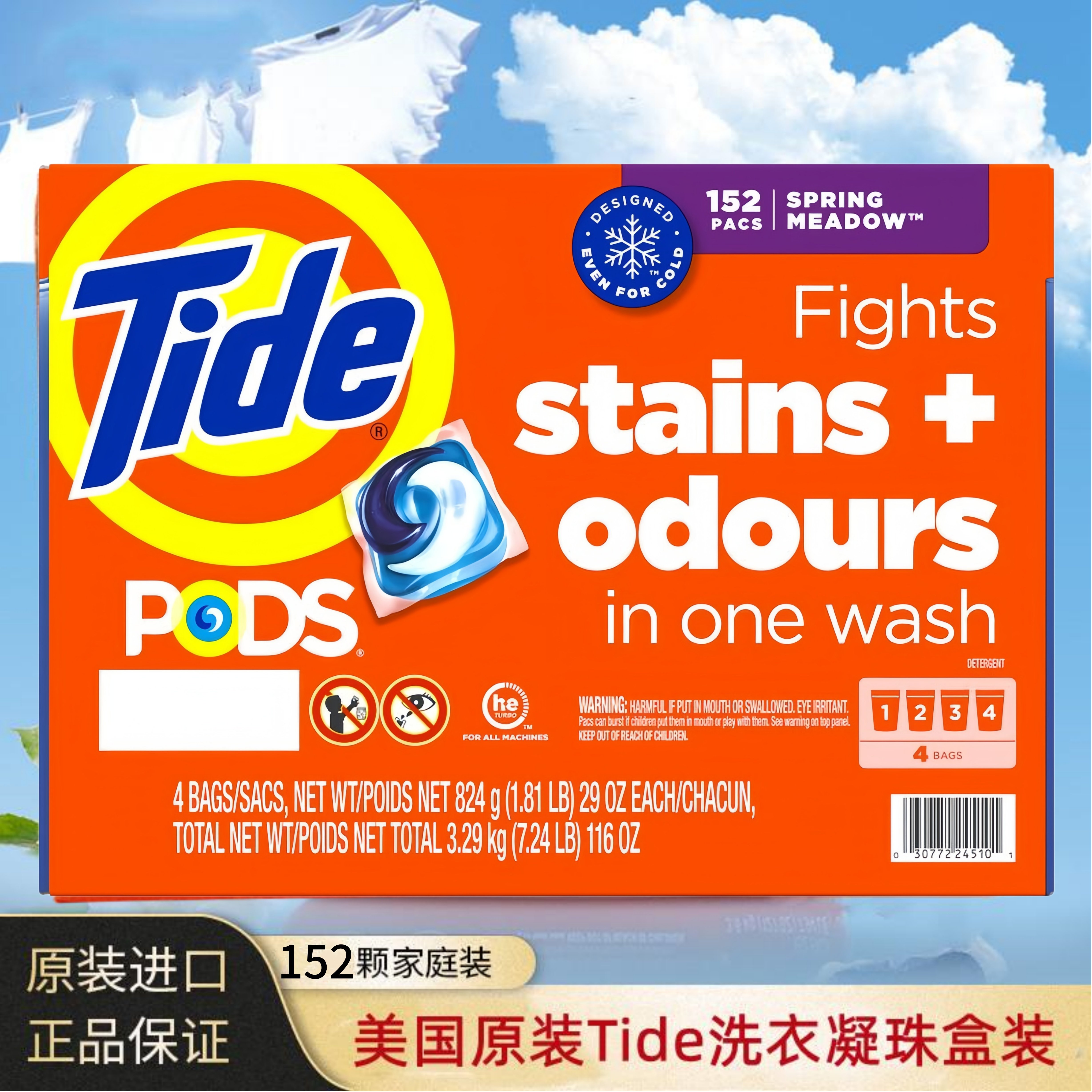 美国 TIDE洗衣球凝珠胶囊汰渍pods液4合1速溶增艳白104/152颗低敏