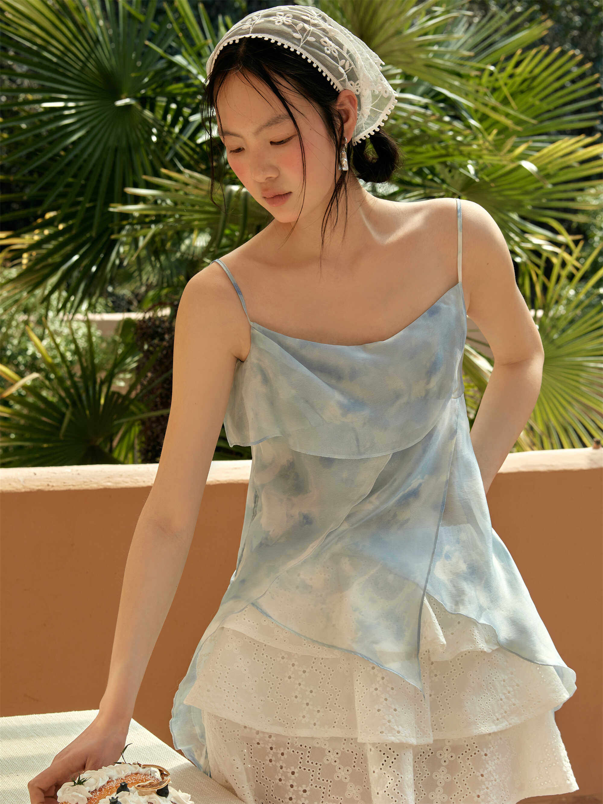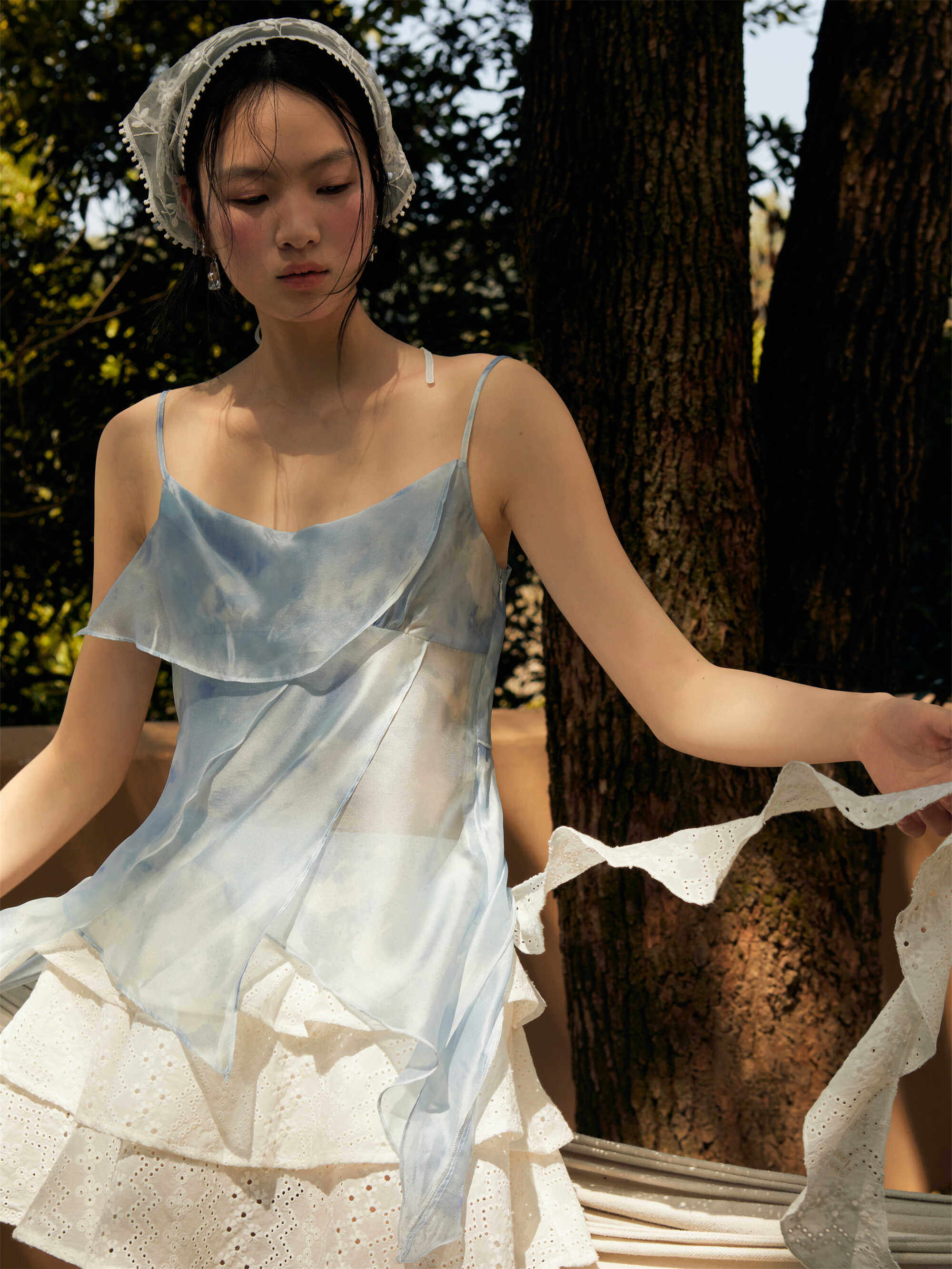Shiitake【心动的信号王珏同款】蓝色晕染纱层叠吊带上衣