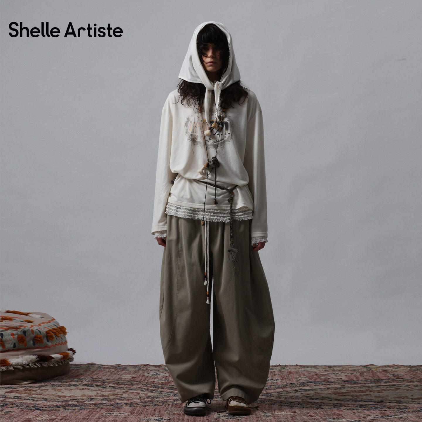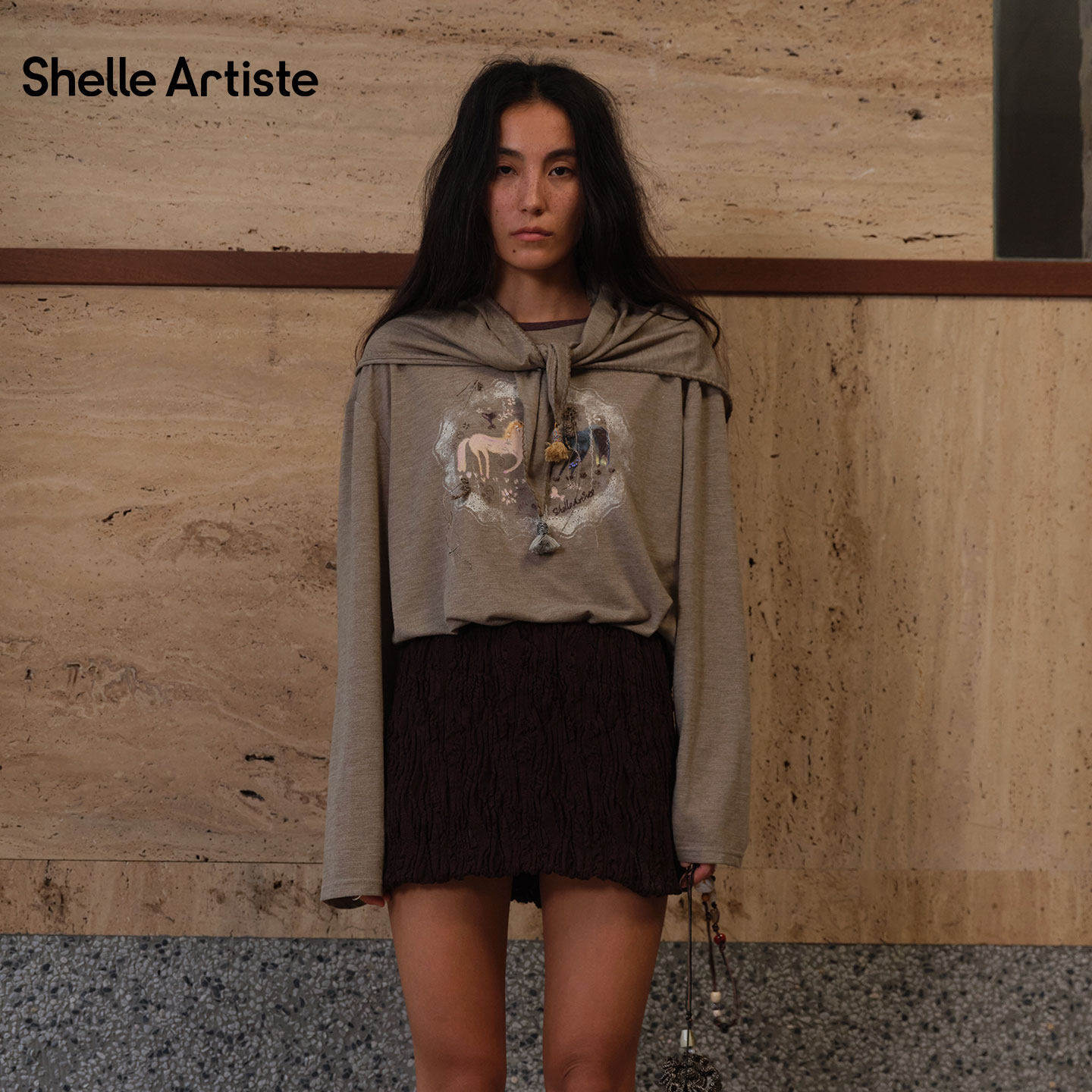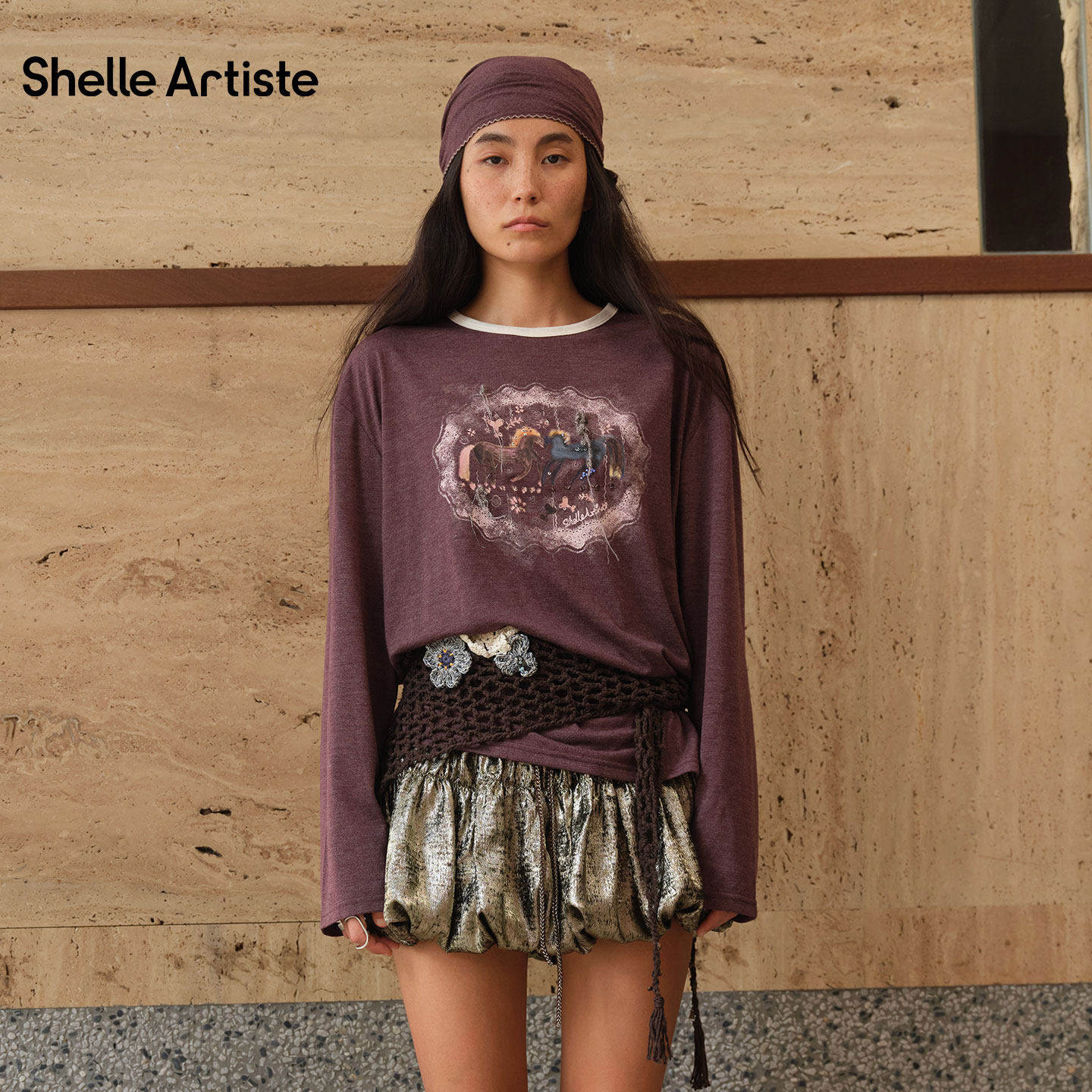【现货】SHELLE ARTISTE 26春季新款复古休闲马上有酒圆领长袖T恤