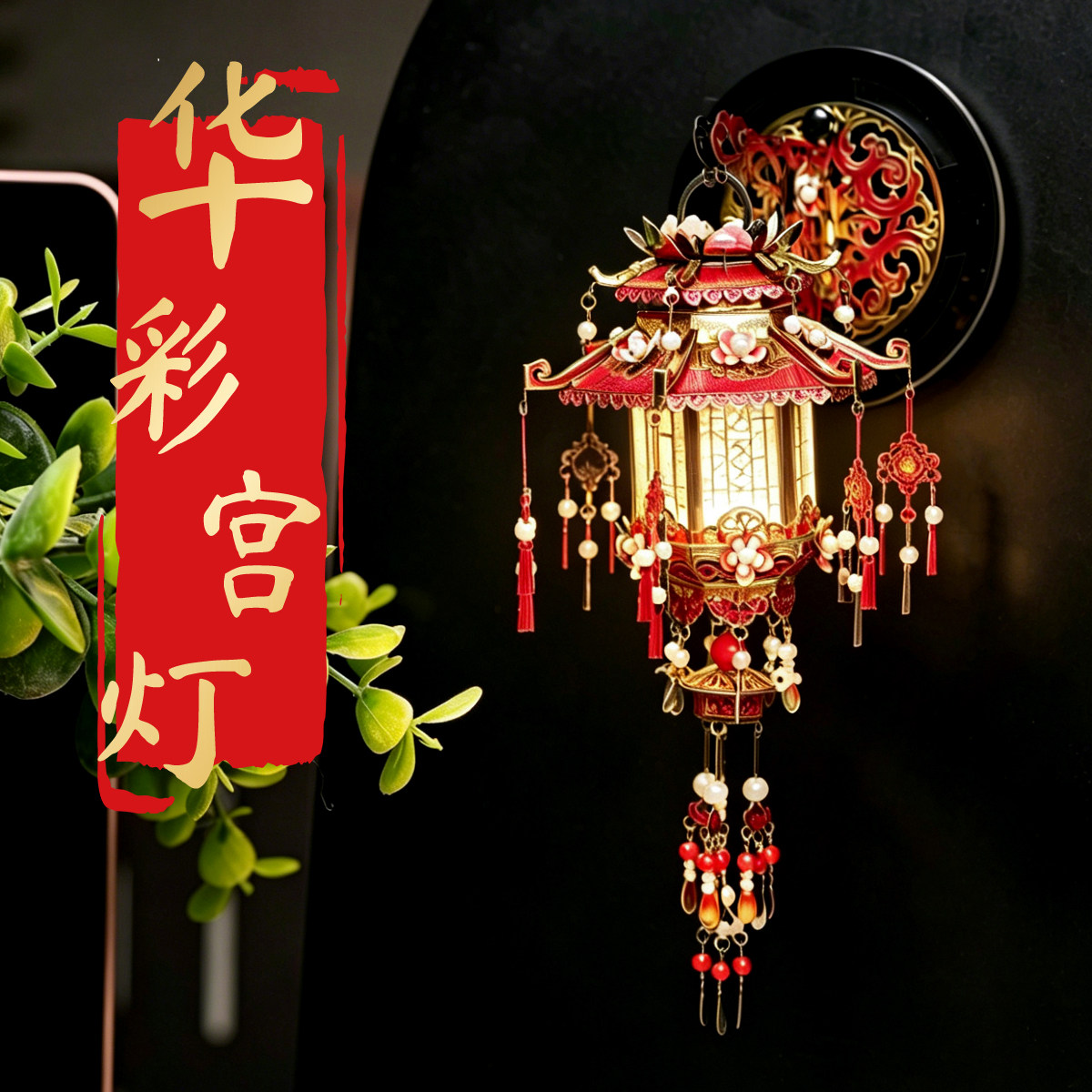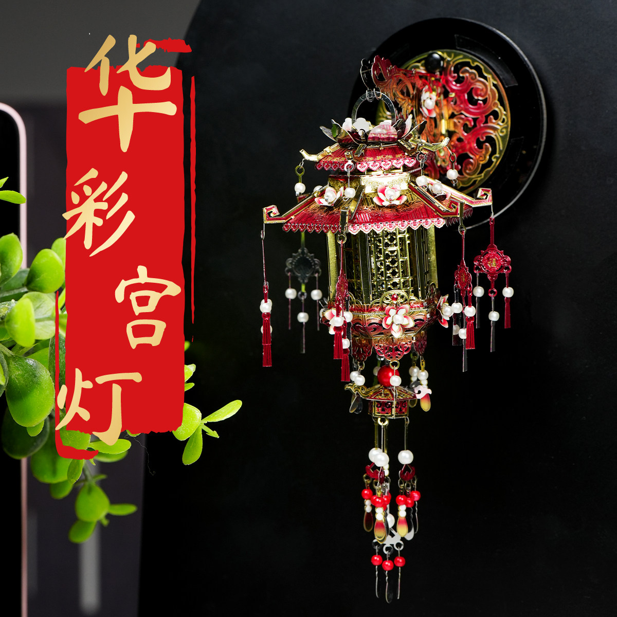 华彩宫灯LED带灯冰箱贴3D立体拼图手工diy金属拼装模型国风礼物