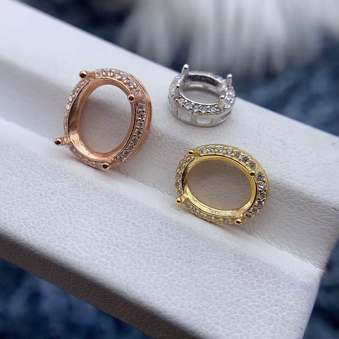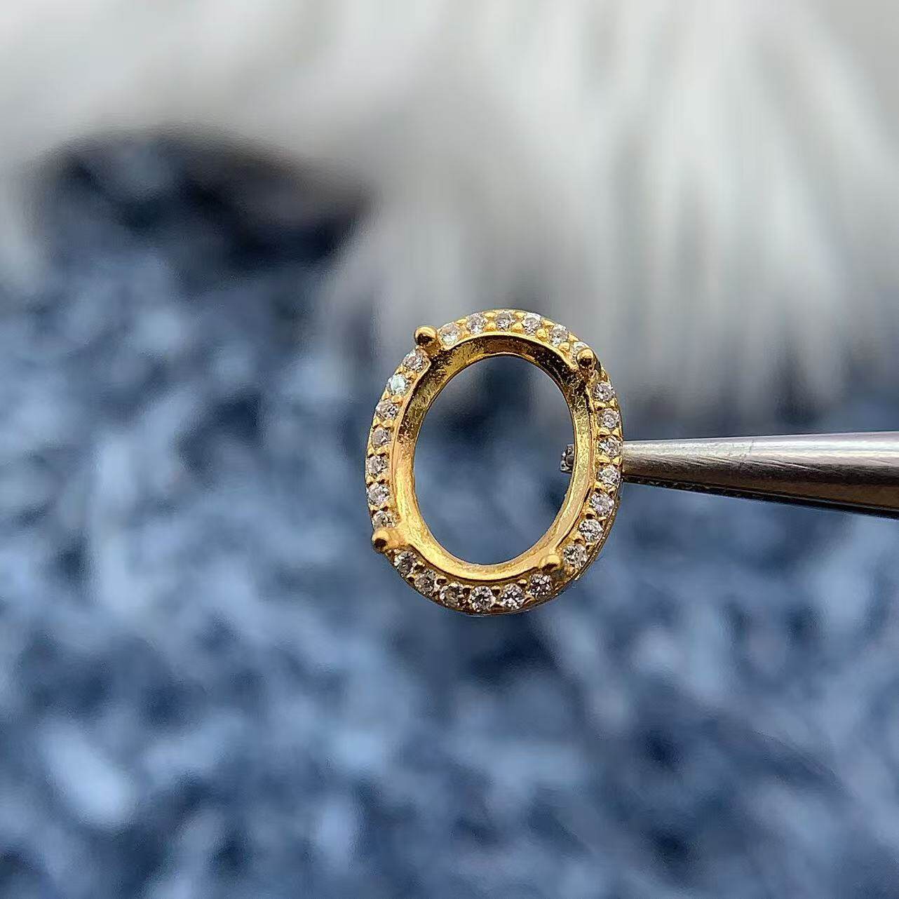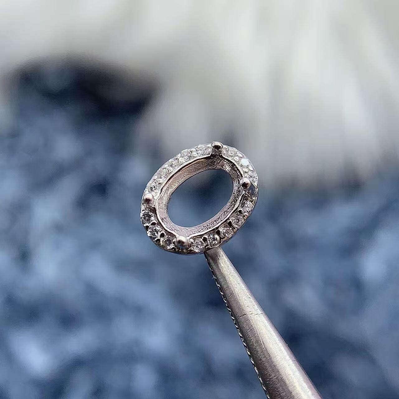 S925纯银吊坠空托椭圆形4*6/5*7/6*8/7*9/8*10/9*11/10*12路路通