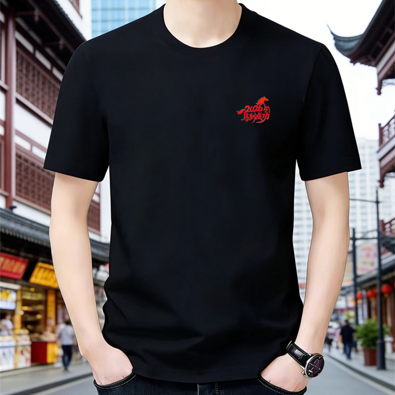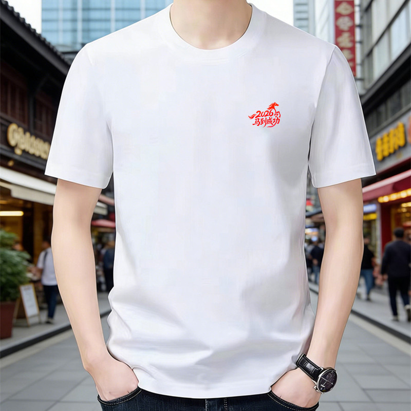 国潮马到成功重磅纯棉夏季圆领短袖T恤男运动休闲宽松情侣打底衫