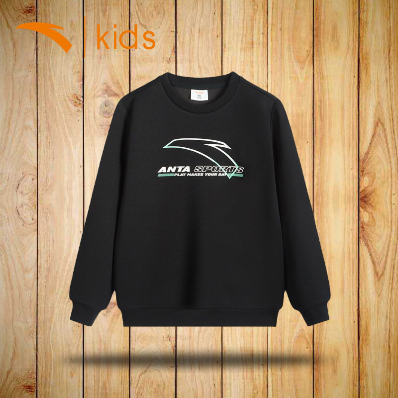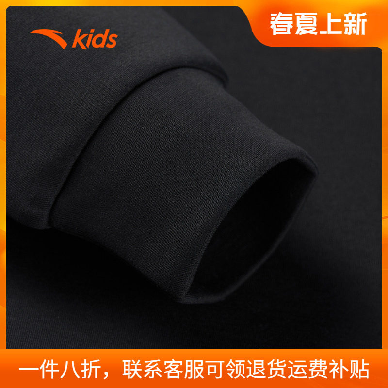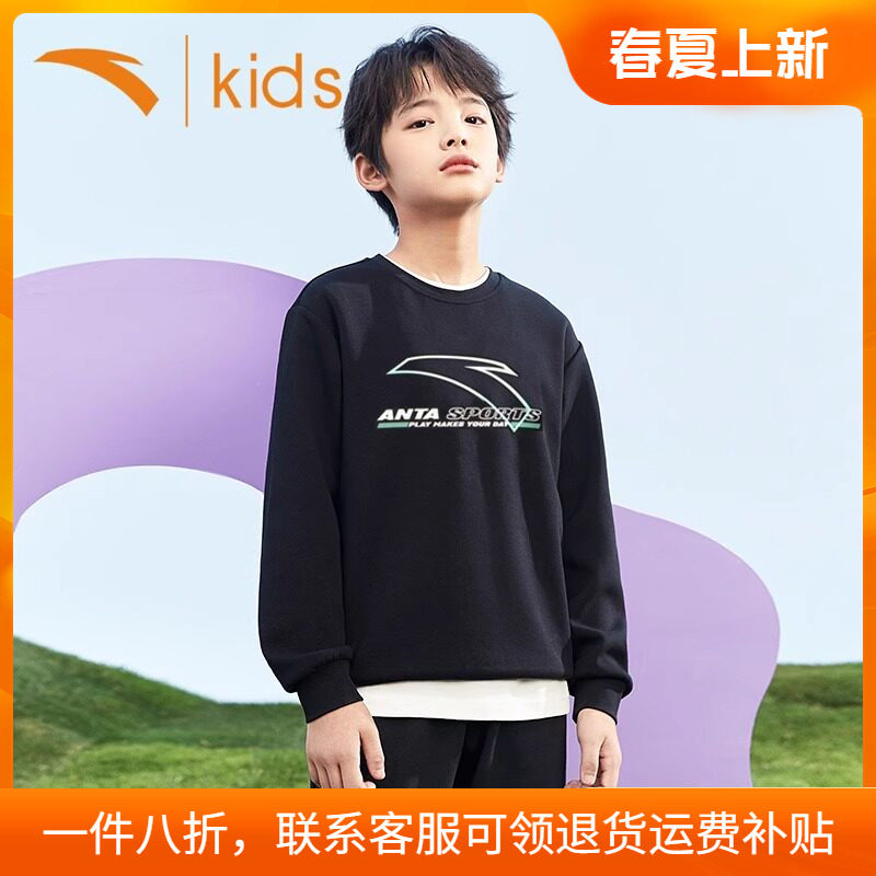 安踏童装男童卫衣2026冬季新款男大童套头衫长袖黑色冬装官方旗舰