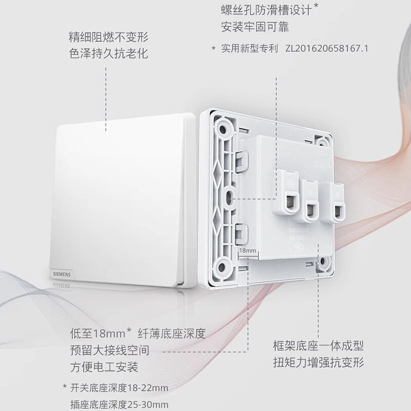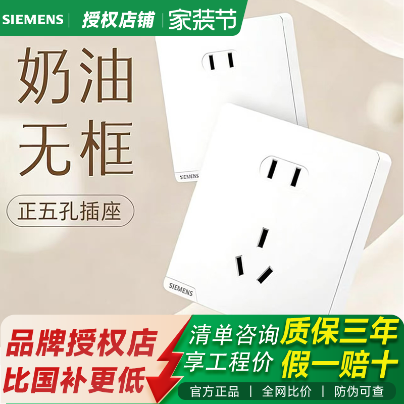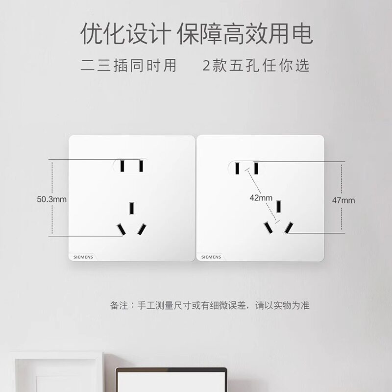 西门子皓彩系列米绒白哑光面白色开关插座二三插电源插座五孔开关