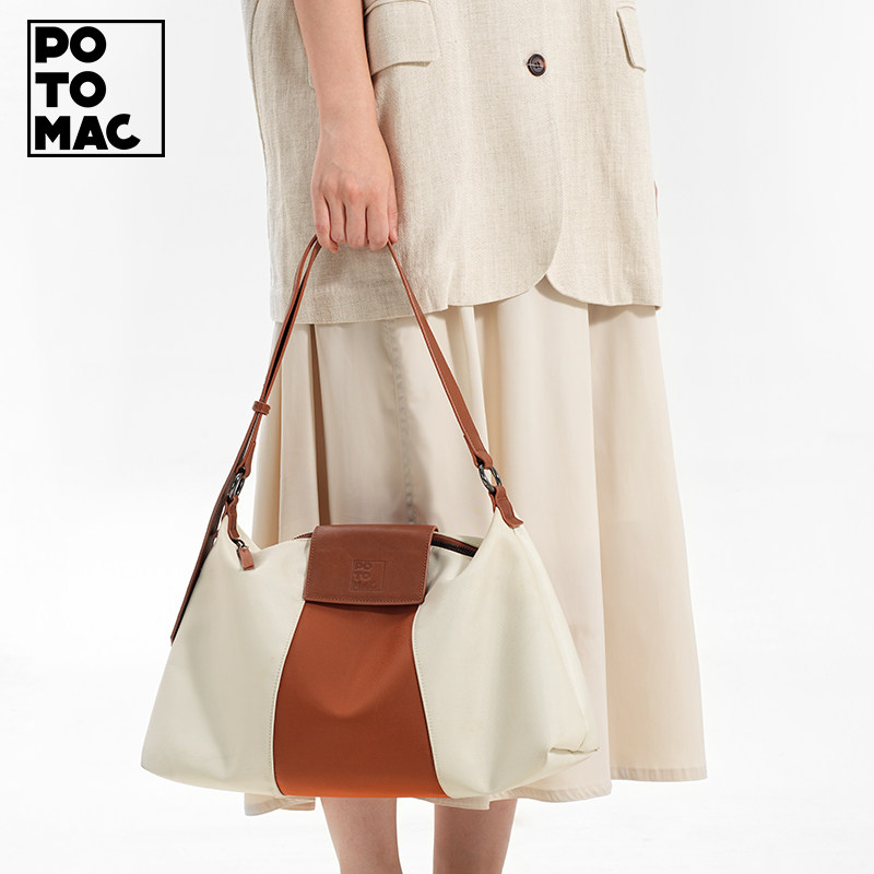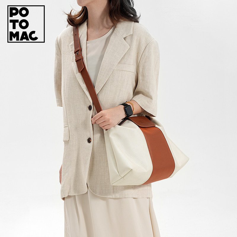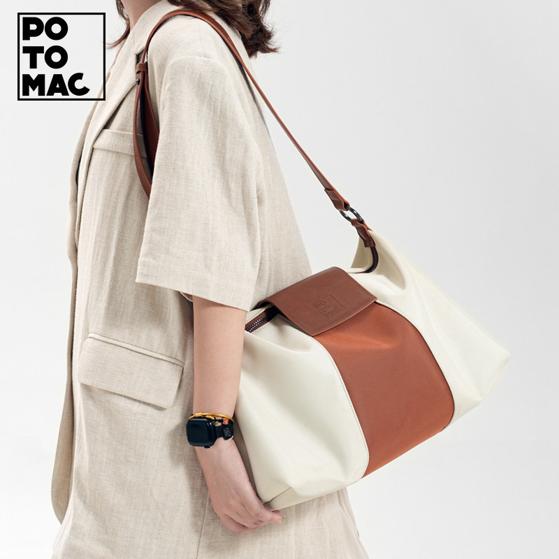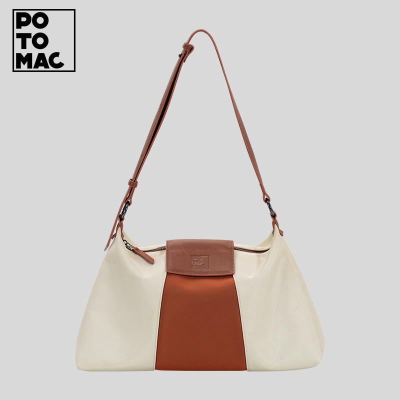 potomac牛津撞色饺子包尼龙头层皮拼接休闲腋下包单肩斜跨包包女