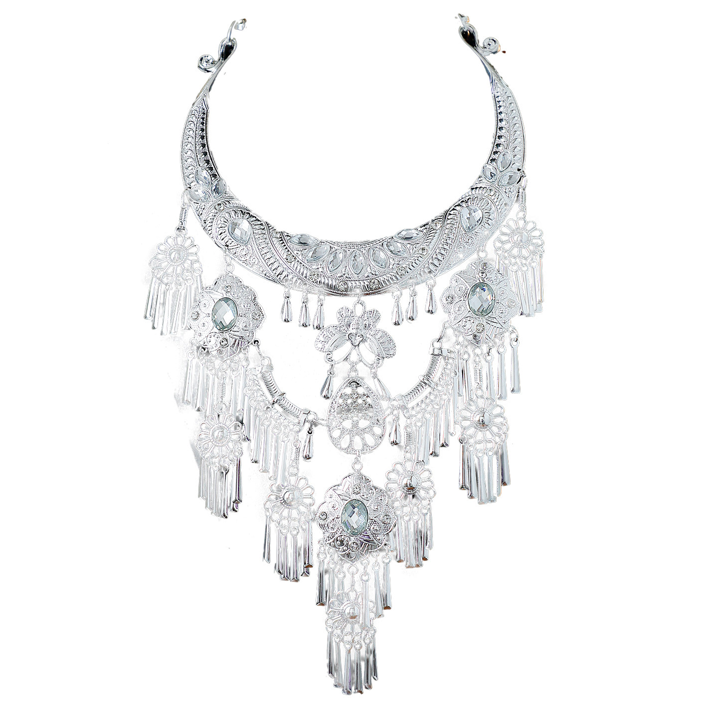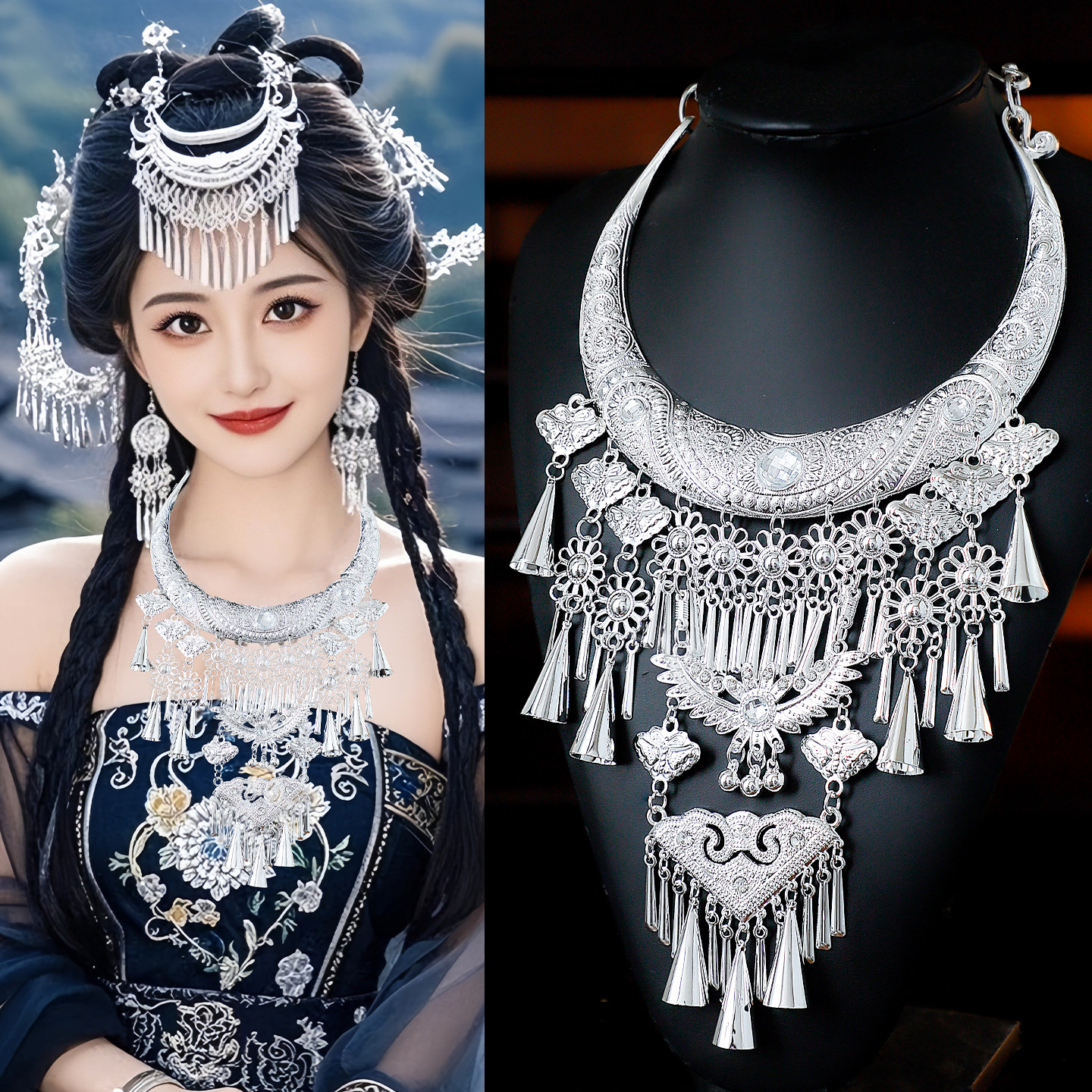 少数民族风仿苗银项圈复古镂空流苏吊坠舞台表演写真配饰手工颈圈