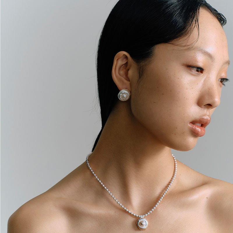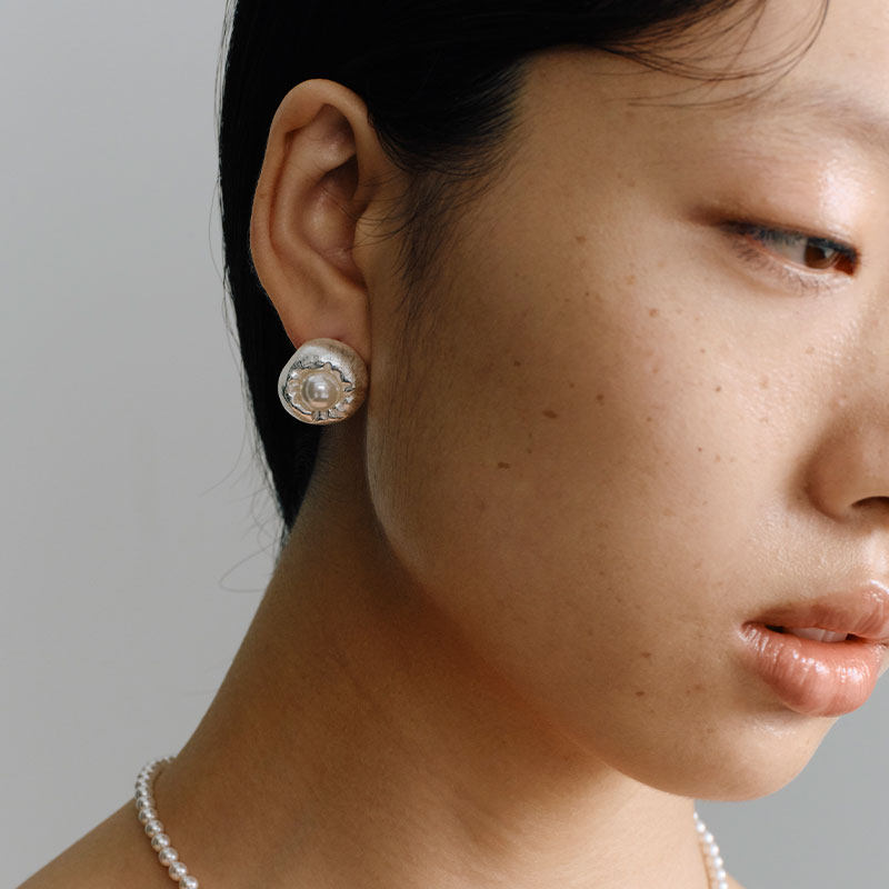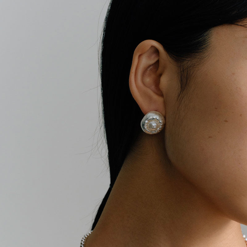 ZHAO ACAP原创设计丝绸与干空气褶皱丝绸包裹珍珠耳环