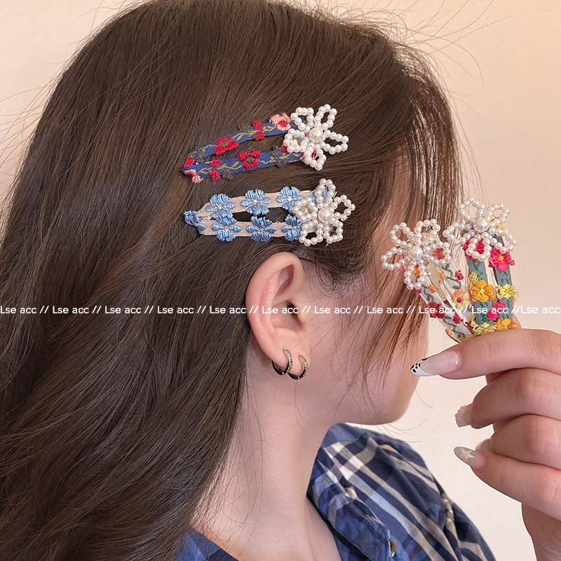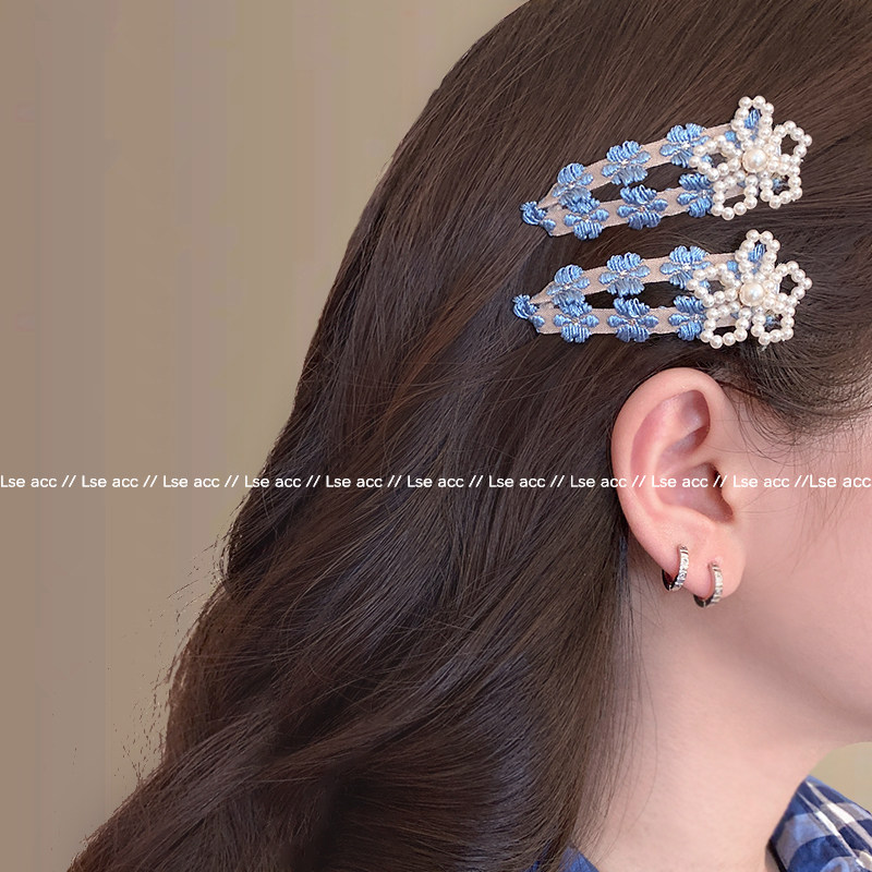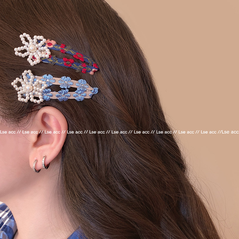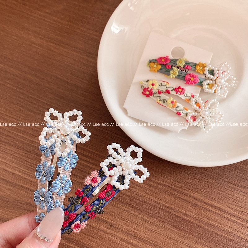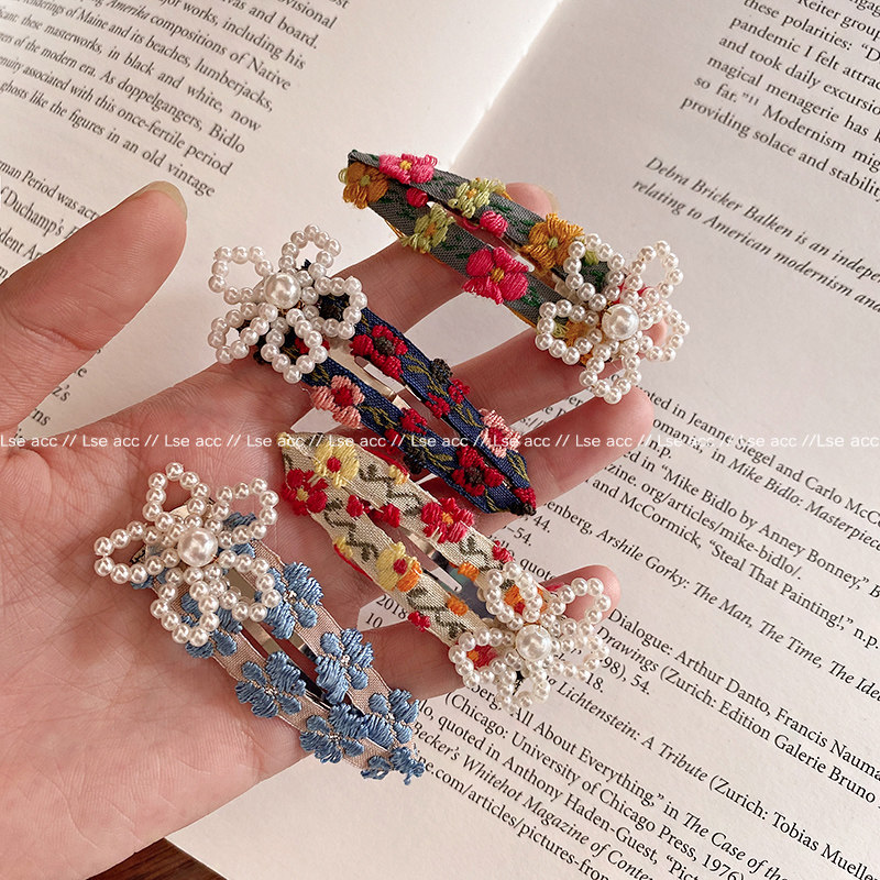 法式碎花珍珠花朵发夹女超仙前额侧边刘海夹文艺少女一字bb夹发卡