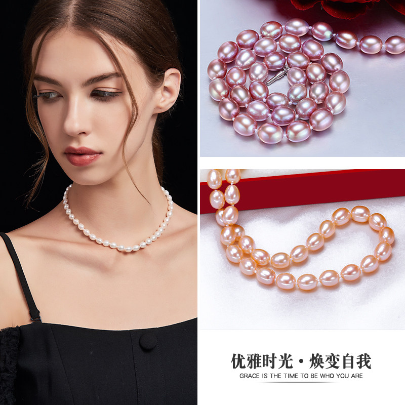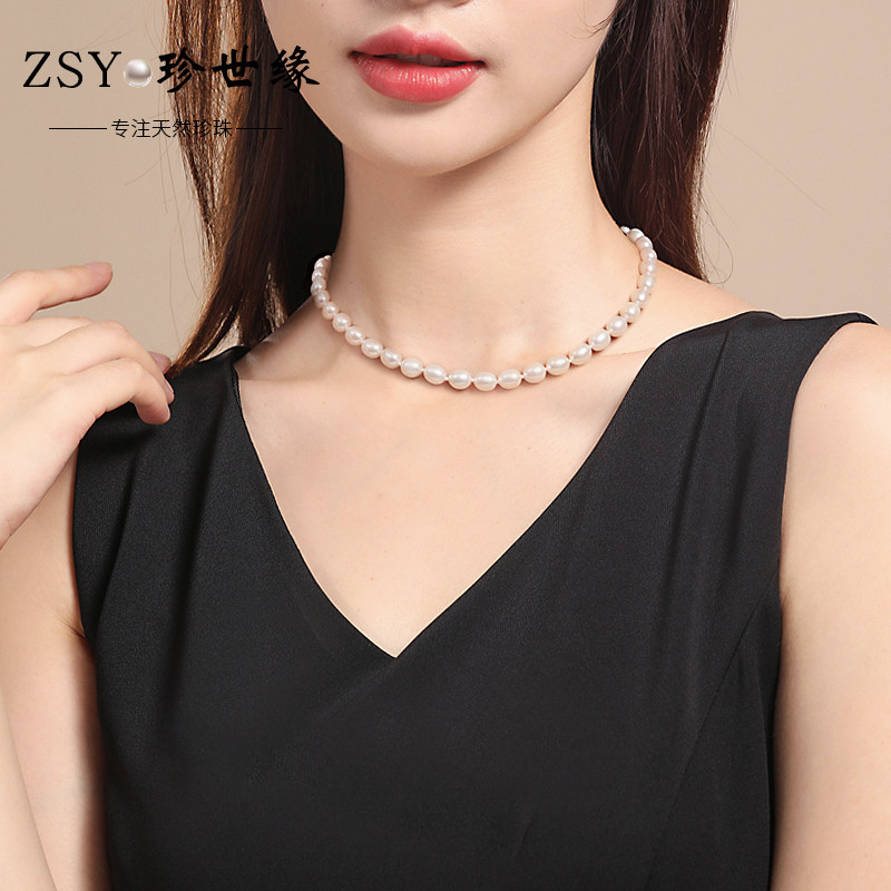 珍世缘 紫颖 淡水米形珍珠项链女时尚年轻款复古锁骨链送女友礼物