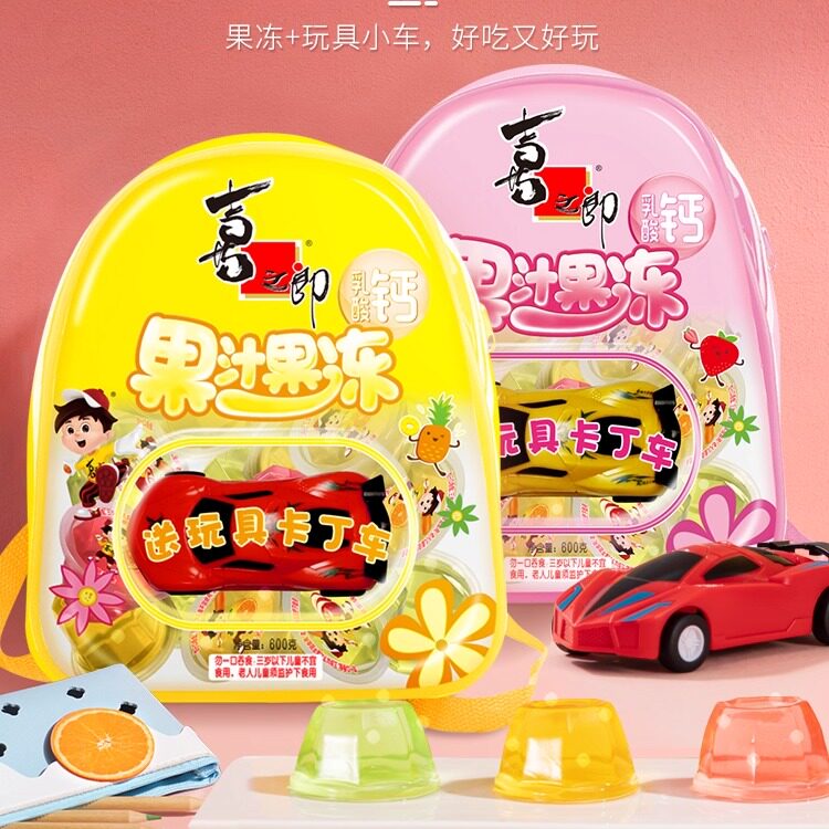 喜之郎果汁果冻书包送卡丁车苹果香橙草莓外出游旅行礼包双肩儿童