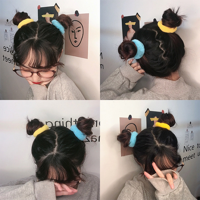 春夏毛绒可爱发圈扎头发橡皮筋糖果色双马尾头绳女丸子头发绳皮套