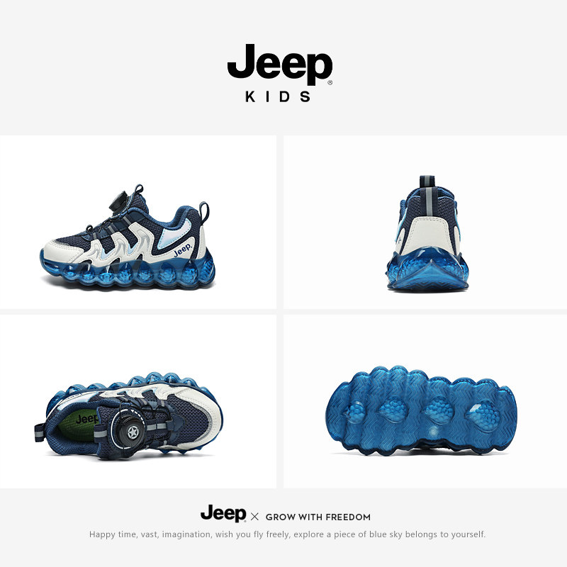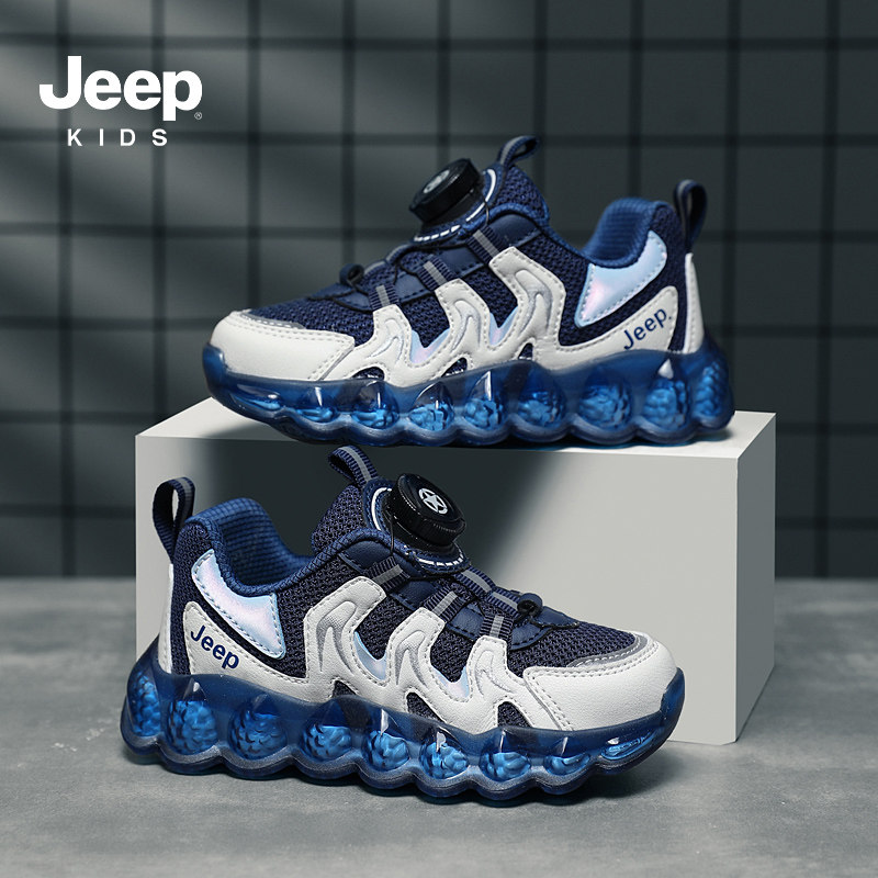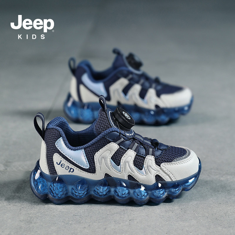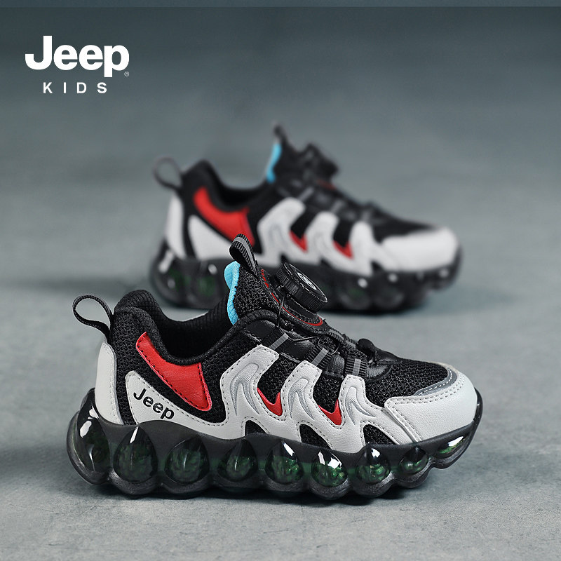 官方丨【百亿品牌补贴】丨Jeep男童鞋旋转纽扣网面透气儿童运动鞋