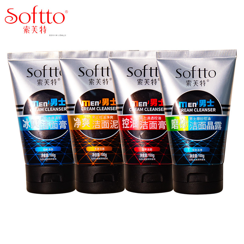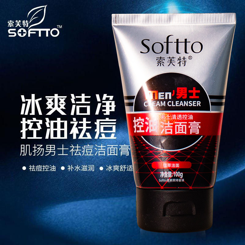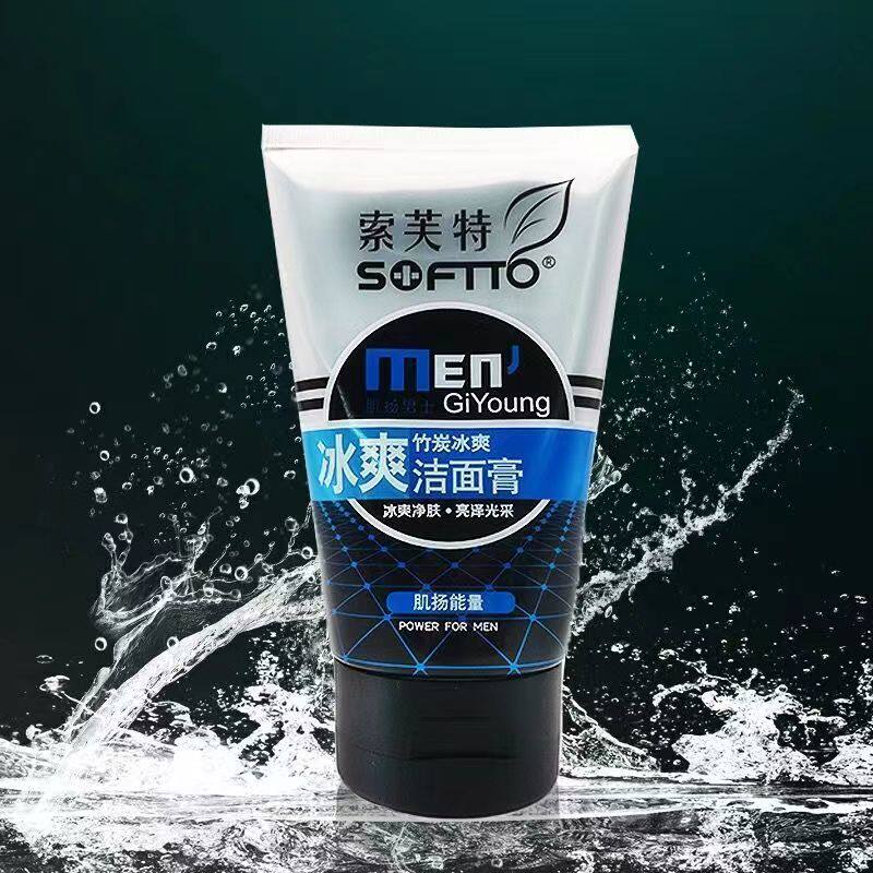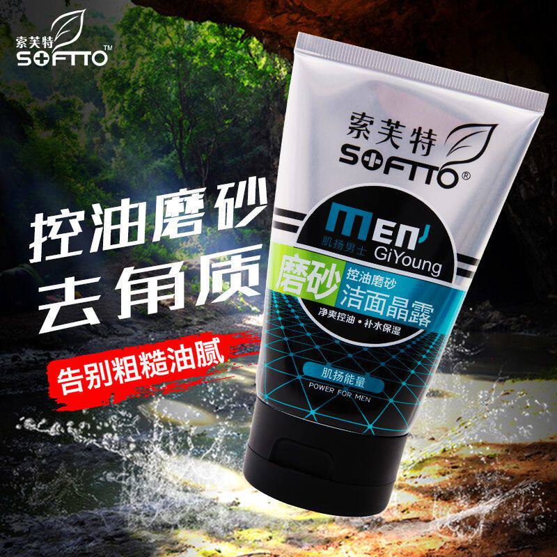 索芙特男士洁面乳清爽控油净爽洗面奶深层清洁磨砂冰爽洁面晶露
