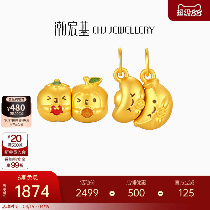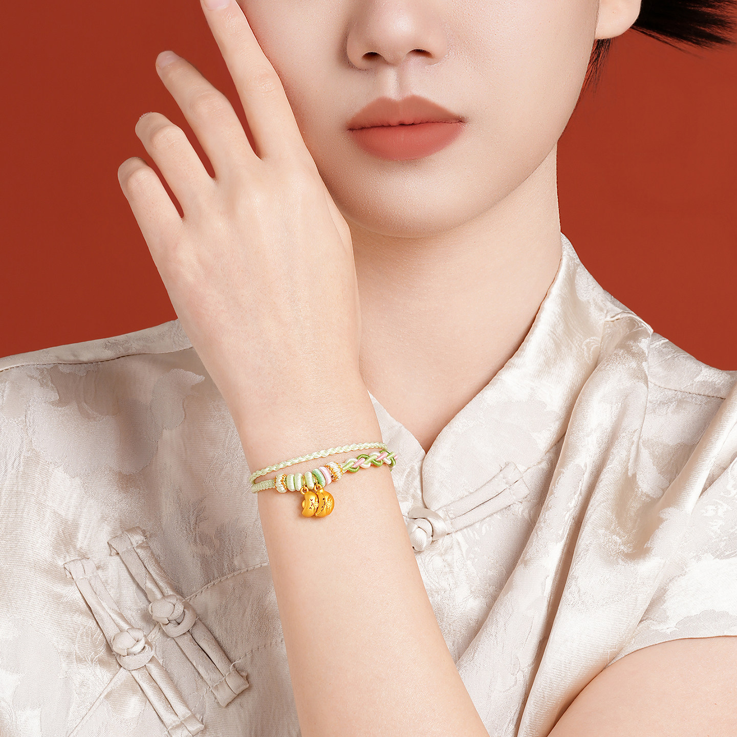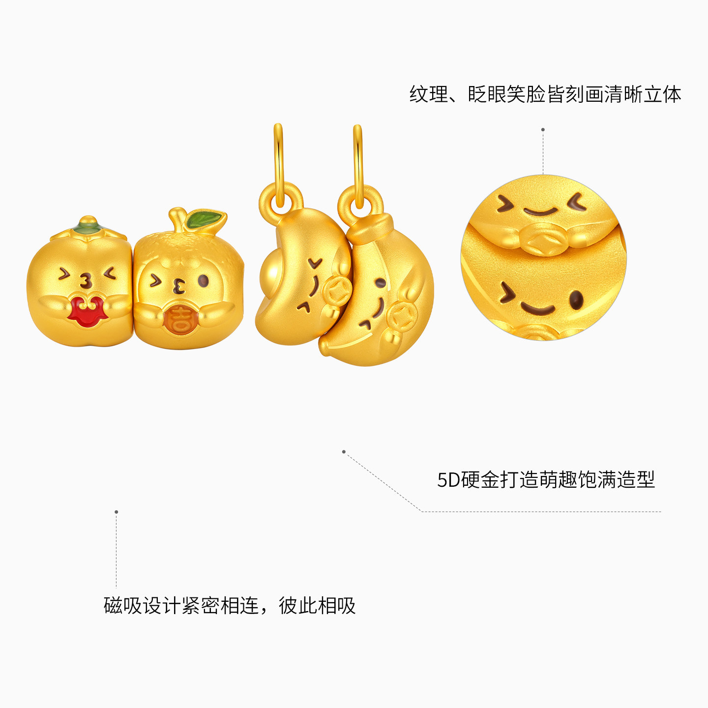 潮宏基好事发生足金吊坠黄金转运串珠磁吸挂坠硬金显大生日女