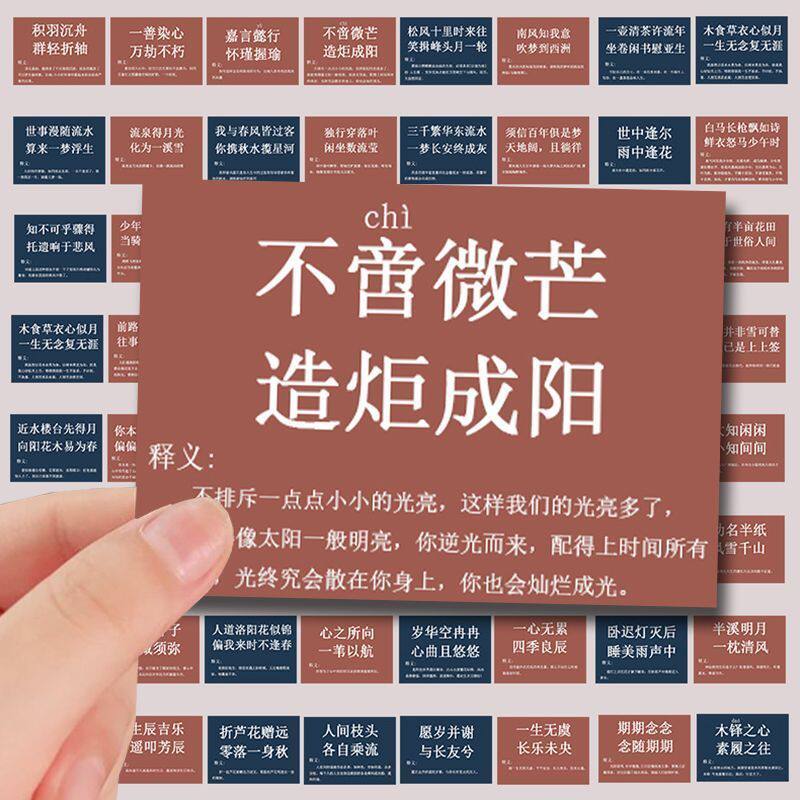 200张佳词金句古诗词贴纸中国风励志文字装饰手账涂鸦DIY防水贴画