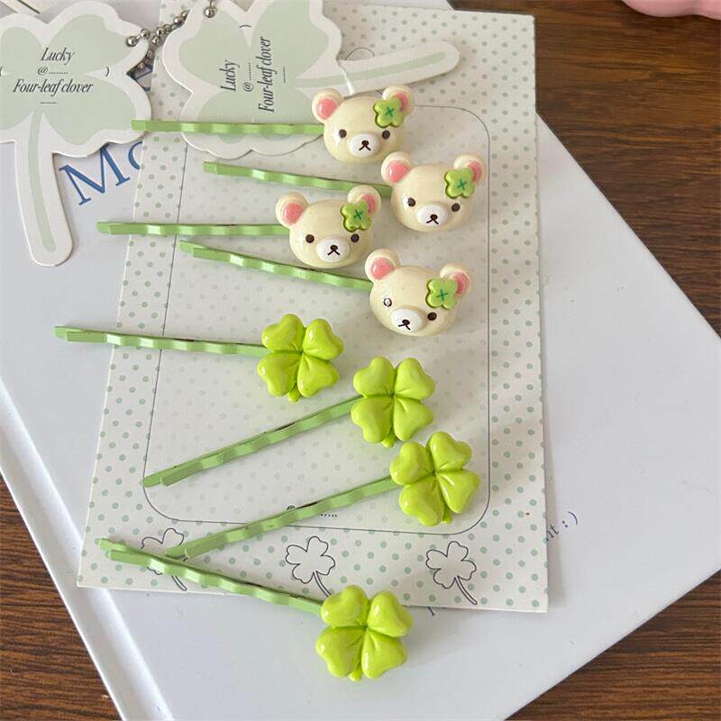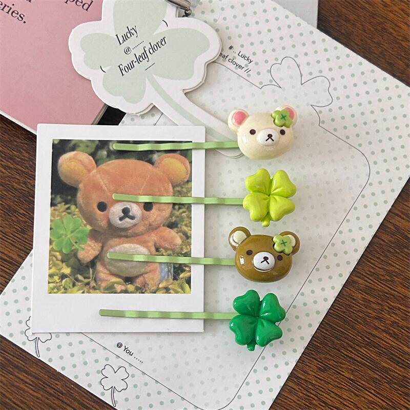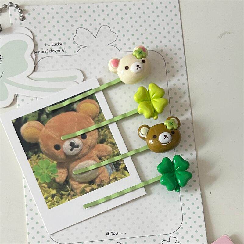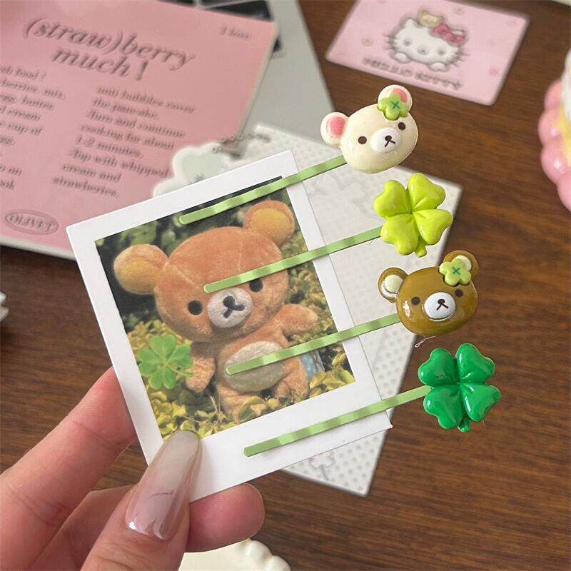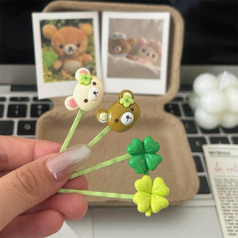 可爱四叶草轻松熊发夹ins少女甜美卡通无痕刘海侧边夹发卡化妆夹