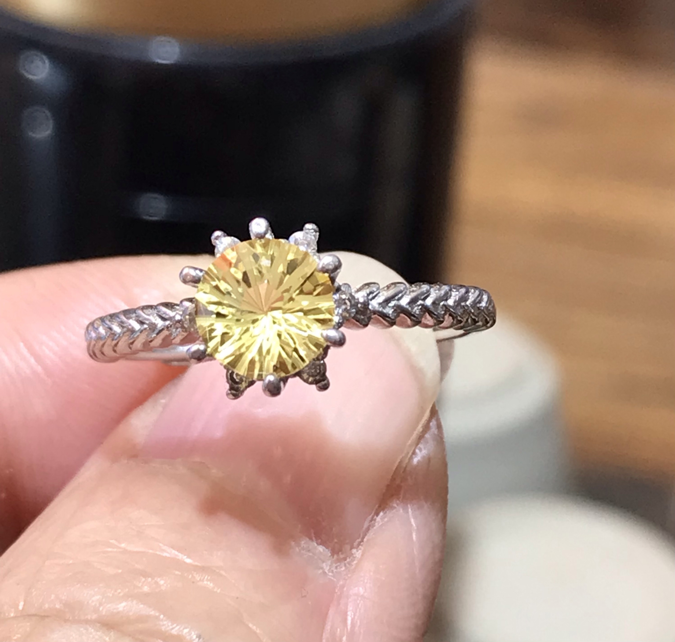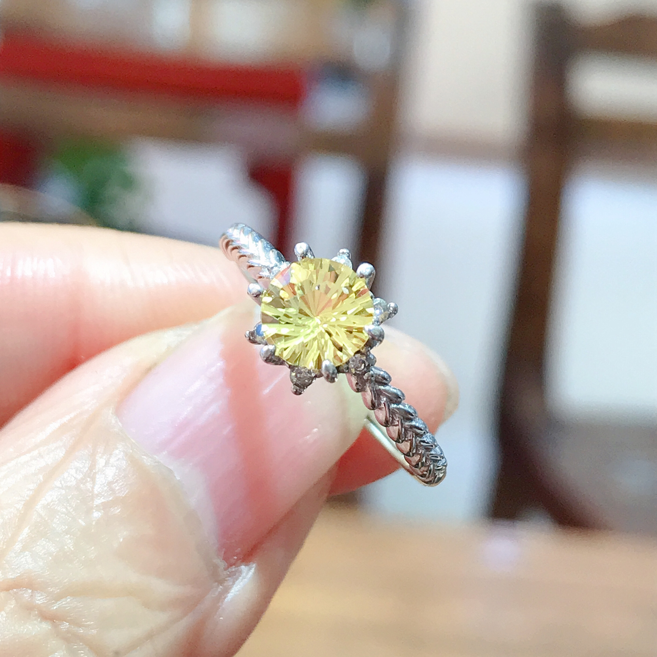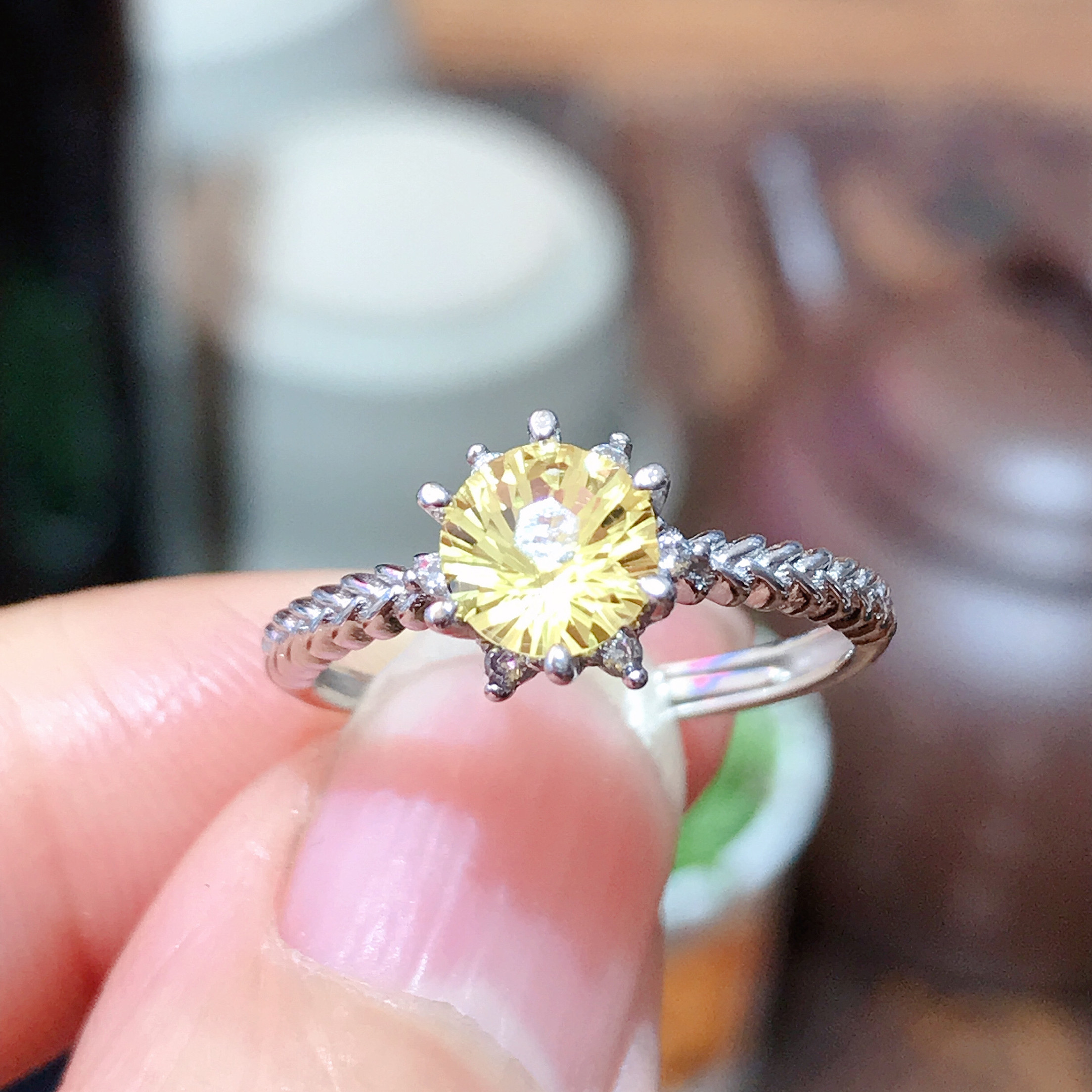 清仓925银镀白金烟花切黄水晶戒指女小众设计感高级轻奢精致礼物
